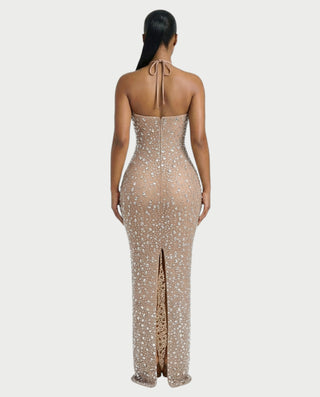 ASHA Rhinestone Halter Bodycon Maxi Dress