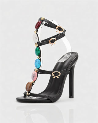 SHERAH Open Toe & Rhinestone Embellished Stiletto Heels