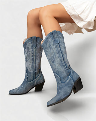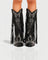 BRIANNE Square Head Rhinestone Lace-Up Knee High Heels