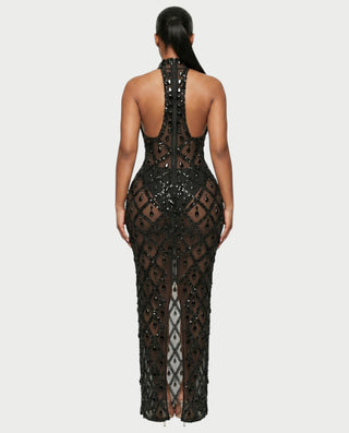 MORIA Crystal High-Neck Bodycon Maxi Dress