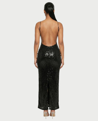 JADA Rhinestone Embelished Open-Back Maxi Dress