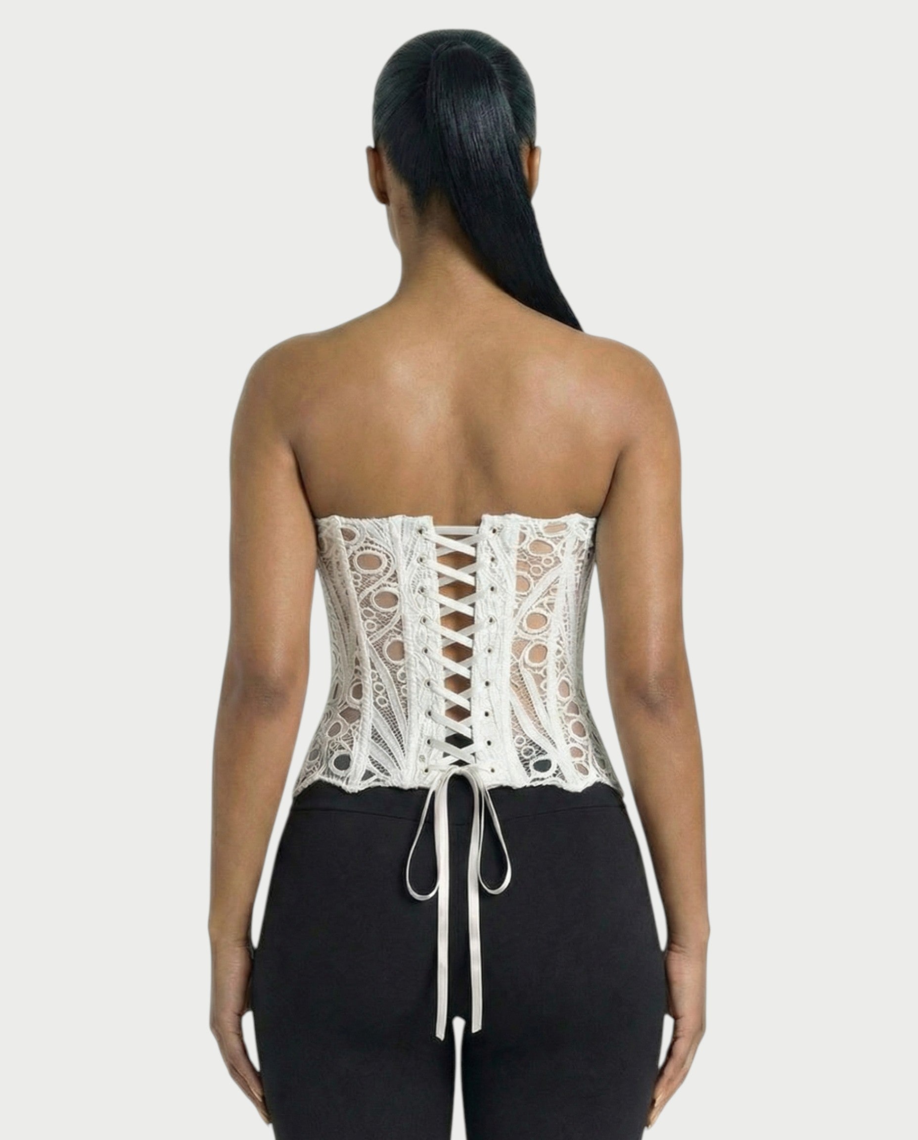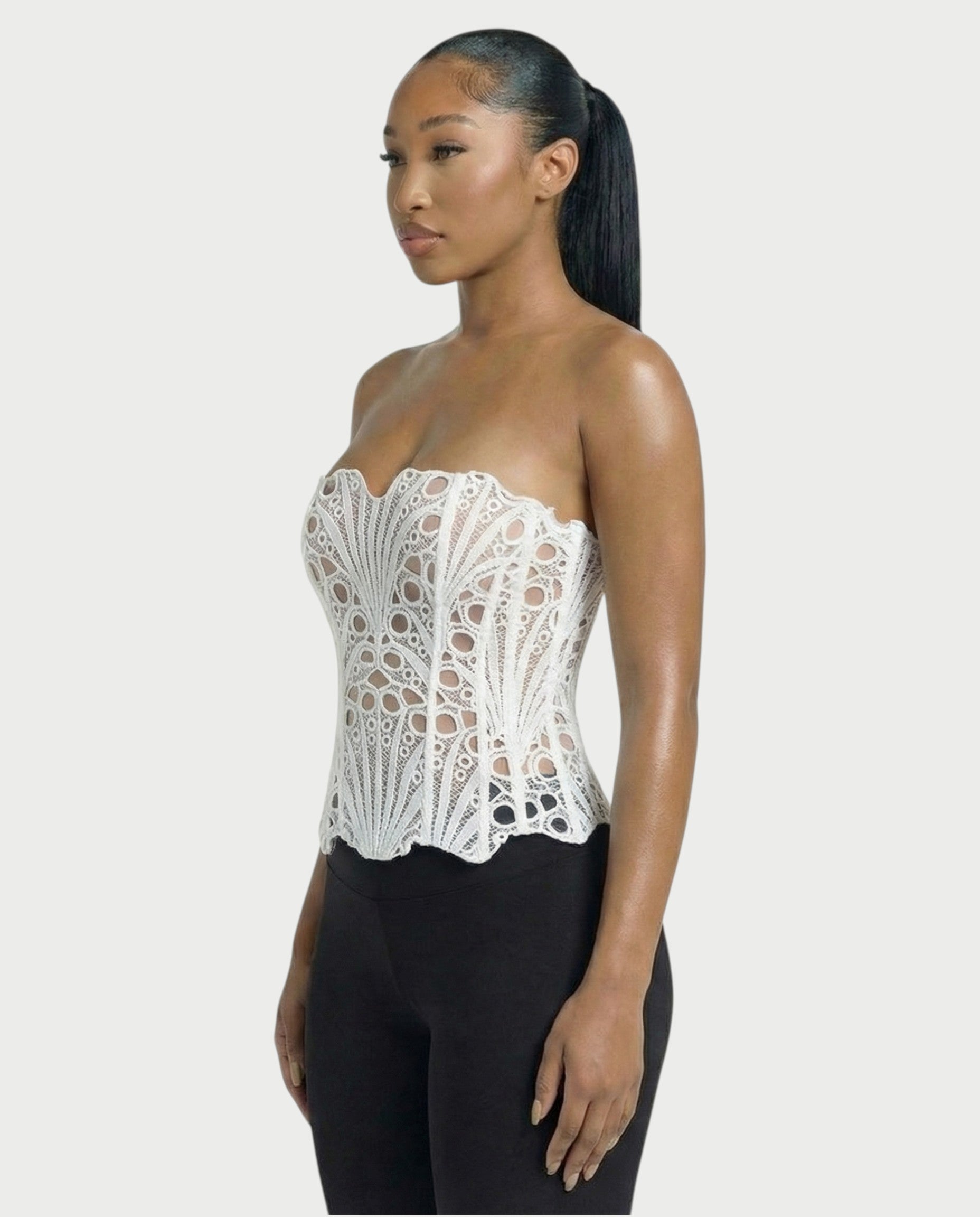 EBONY Guipure Lace Strapless Corset Top