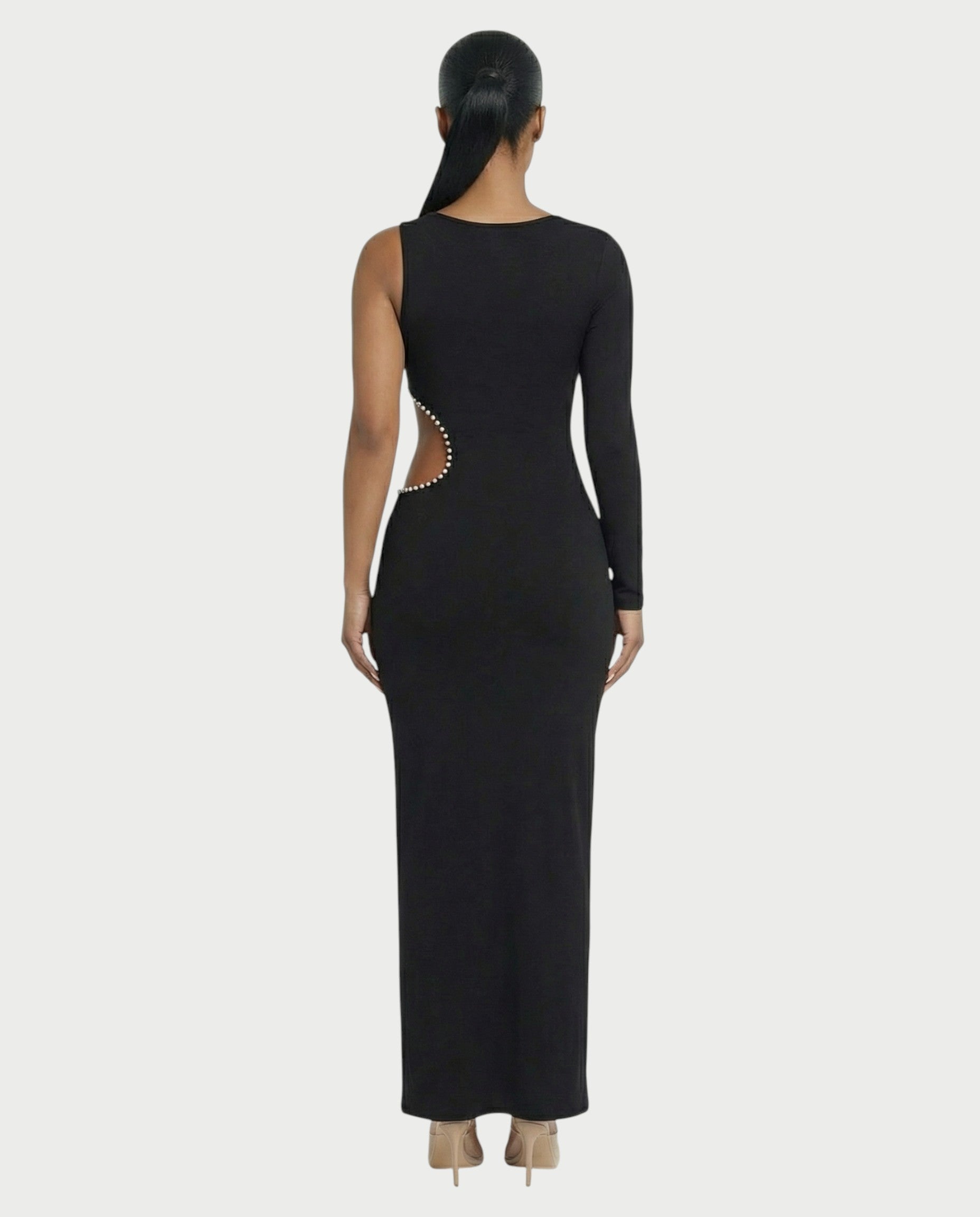BELLIA One Sleeve Pearl Cut-Out Maxi Dress
