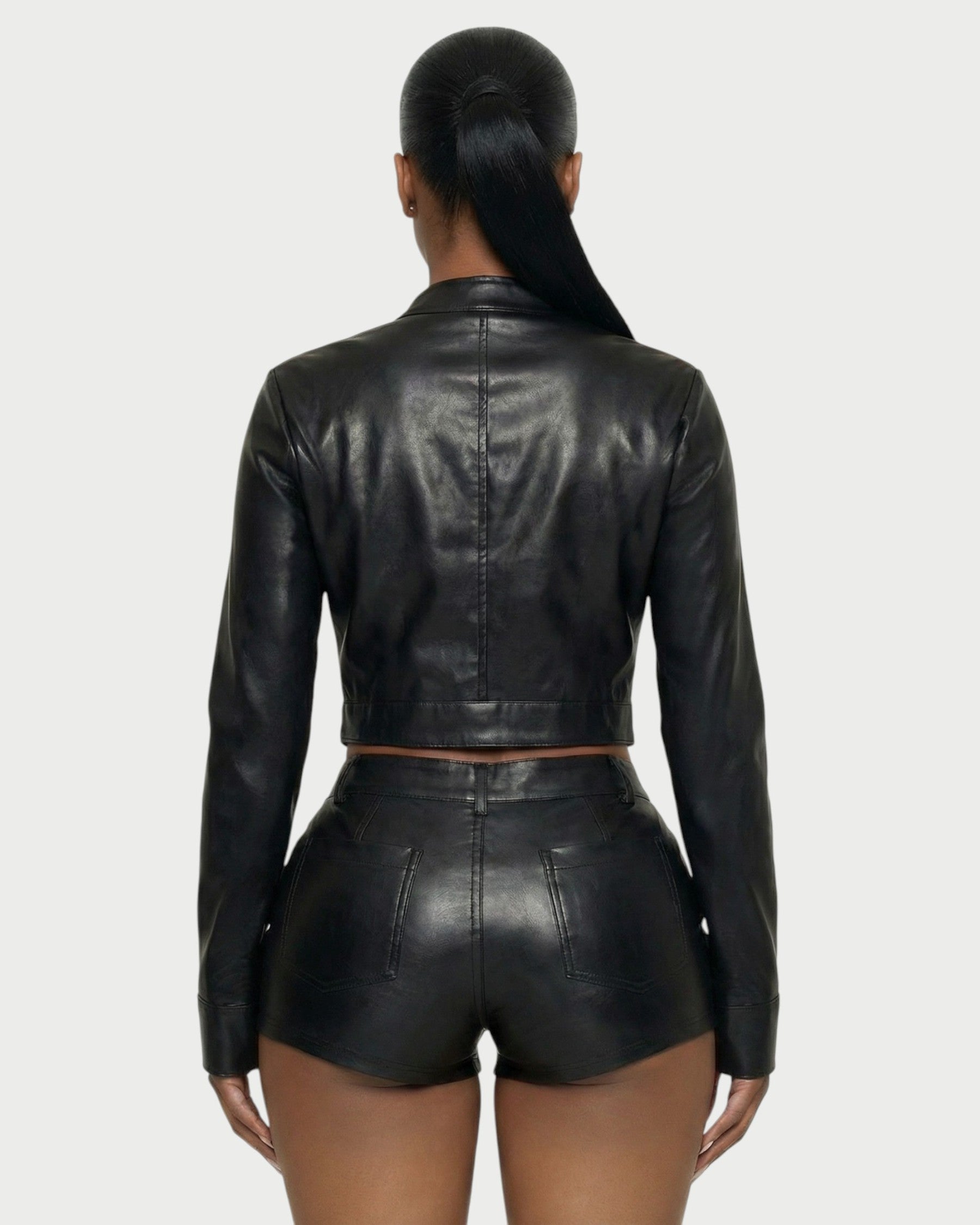 BRIXA Leather Jacket & High-Waist Shorts Set