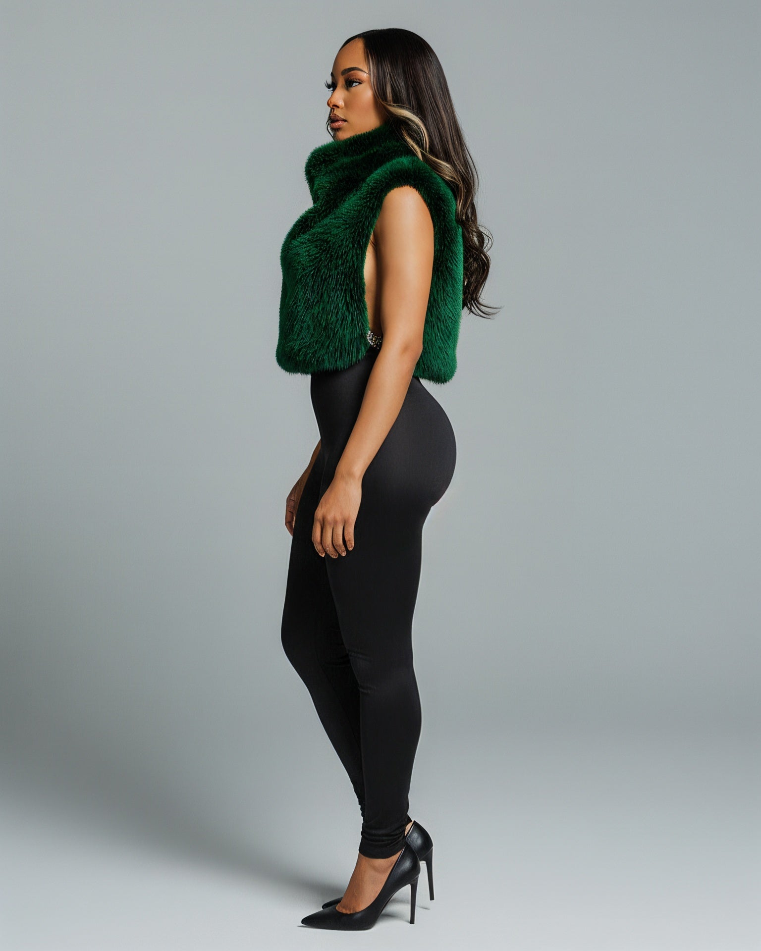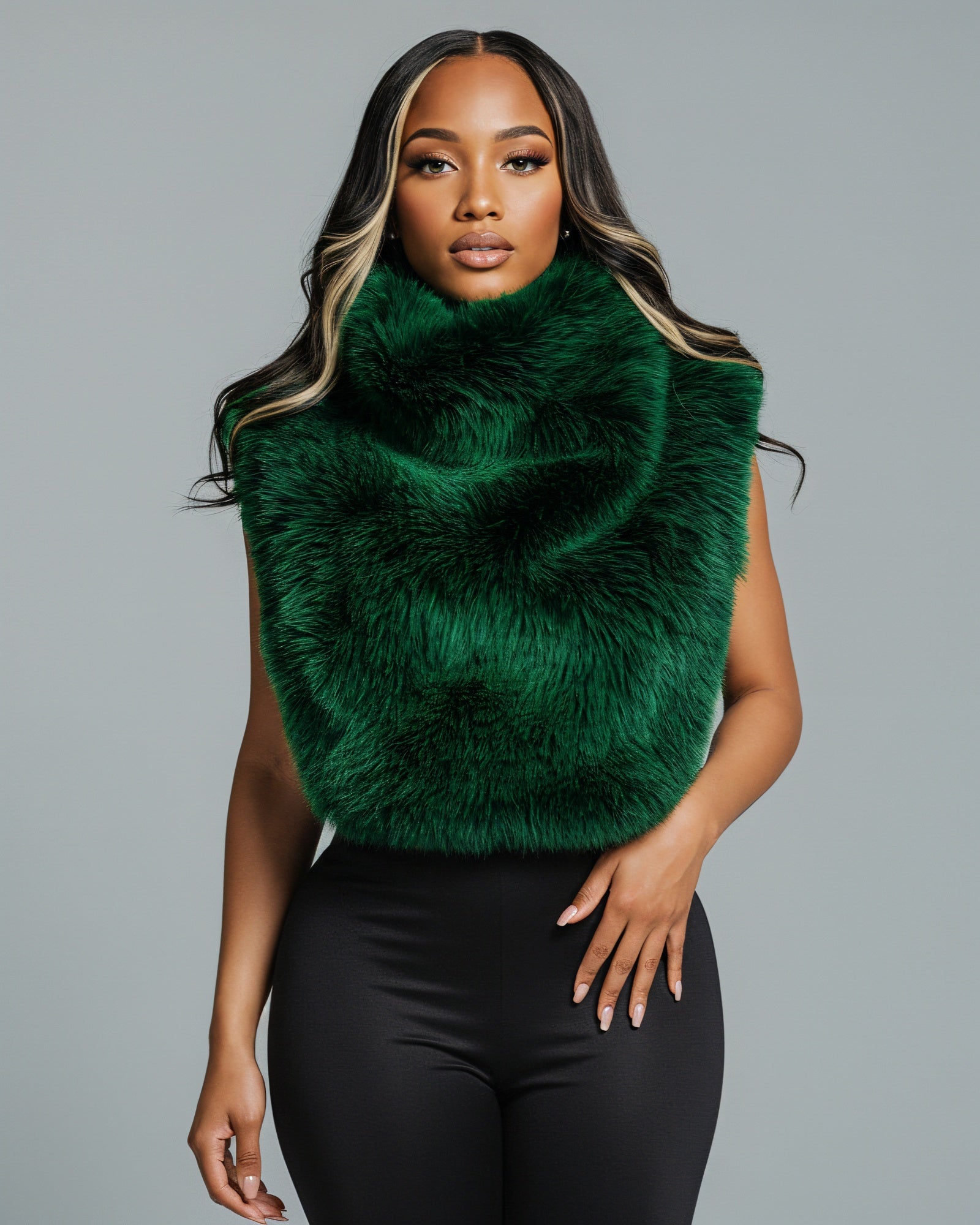Meet the Karise Vest a bold, plush statement piece designed to elevate any look with luxe texture and effortless edge. This sleeveless vest silhouette features a soft, voluminous faux fur finish that drapes beautifully, while the built-in chain detail adds a touch of refined hardware.