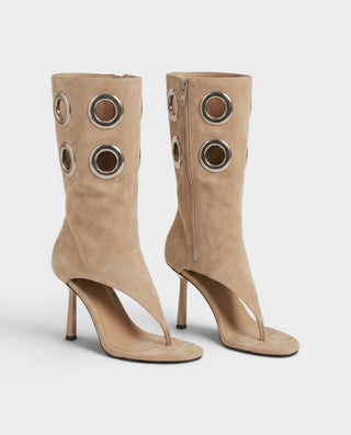 KENNA Metallic Eyelet Open-Toe Stiletto Heel Boots