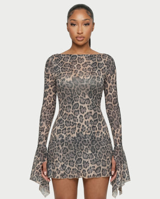 ZEERA Leopard Open Back Ruffle Hem Mini Dress