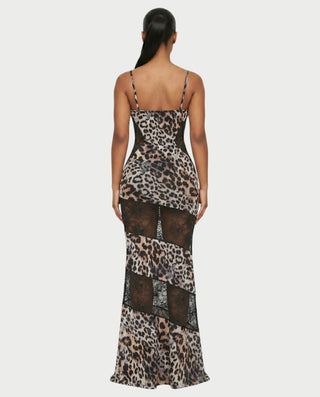 JOLINA Leopard Lace Panel Bodycon Maxi Dress
