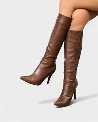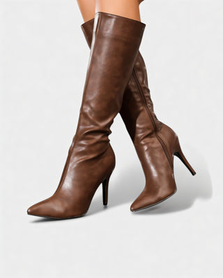 BELLARA Faux Leather Slouchy Pointed Toe Stiletto Boots