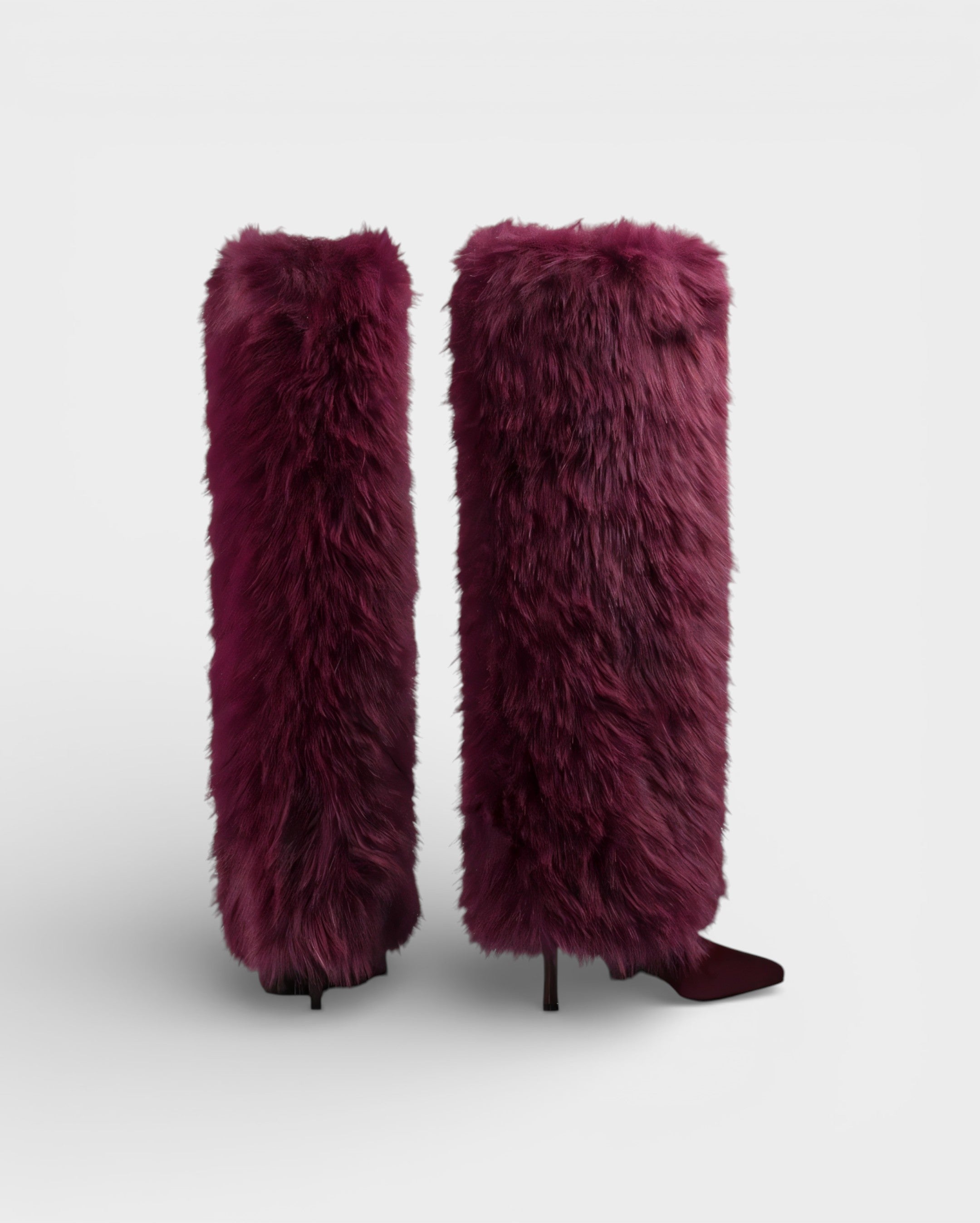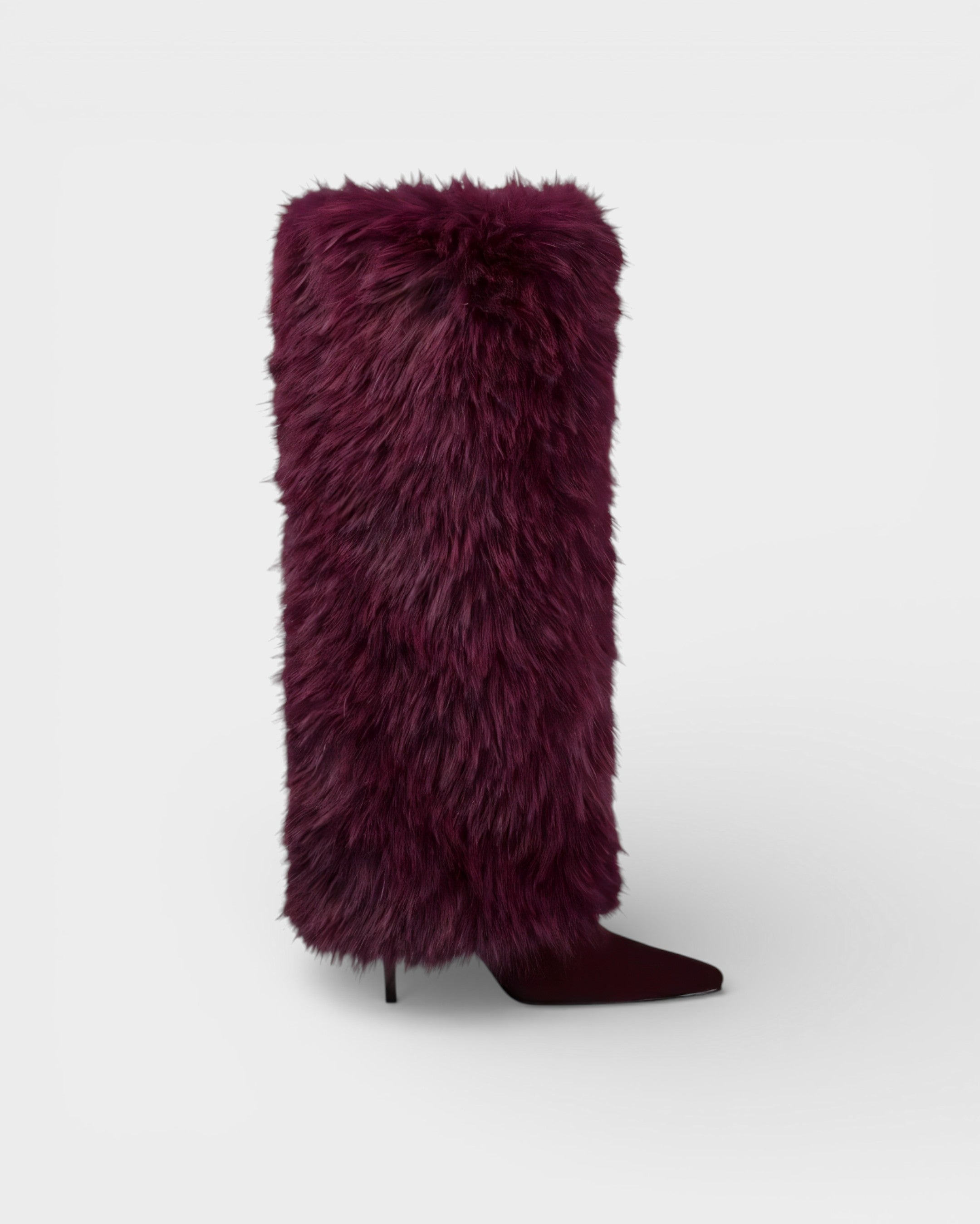 Meet the Lerina Boots a dramatic knee-high design that blends plush texture with a sleek, sculpted base. The calf-length faux-fur exterior creates bold volume, while the streamlined heel and pointed toe keep the silhouette sharp and elevated.