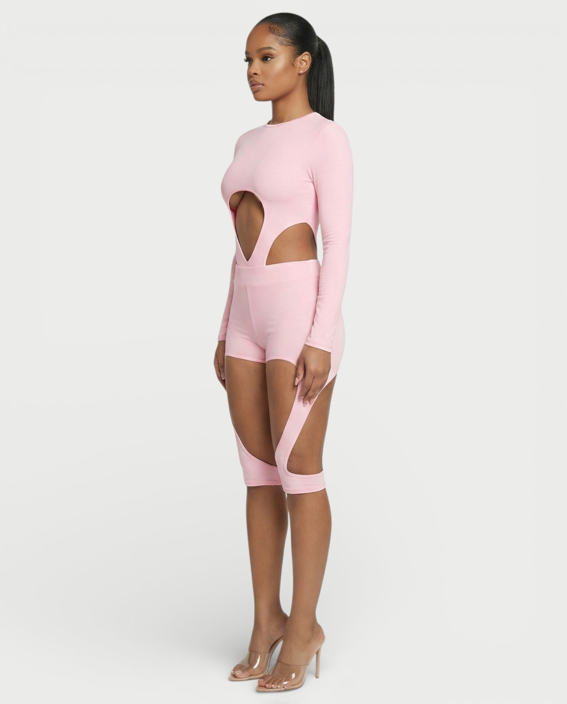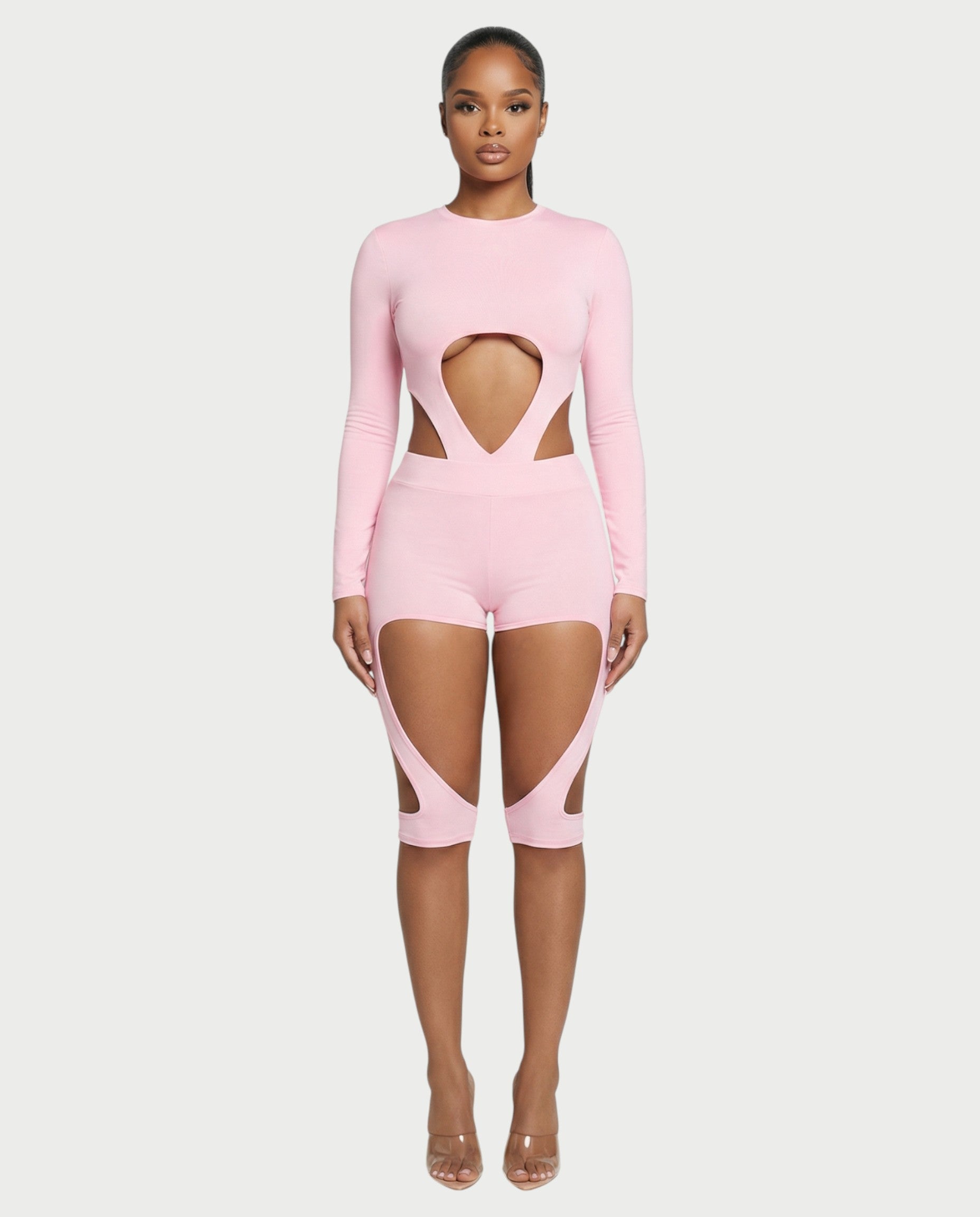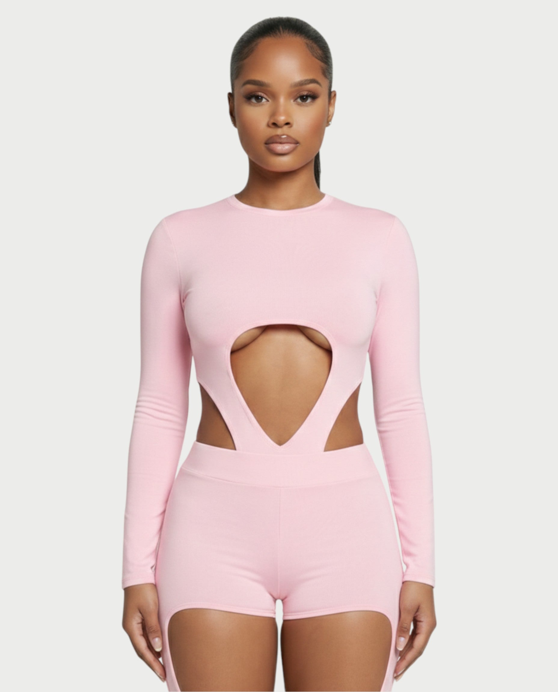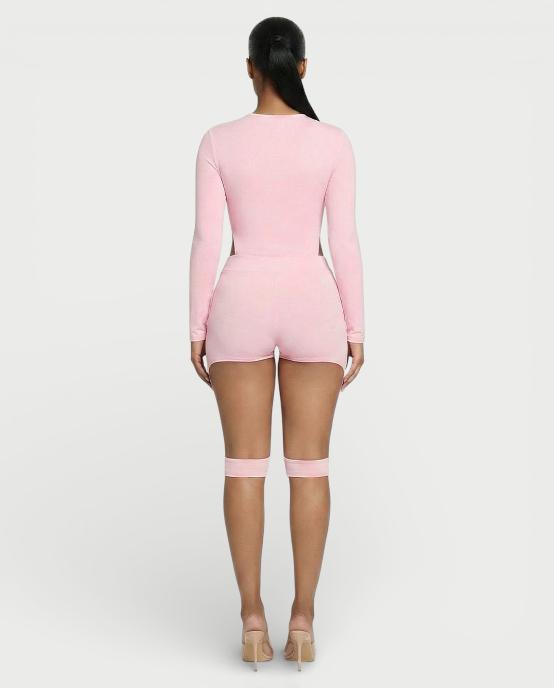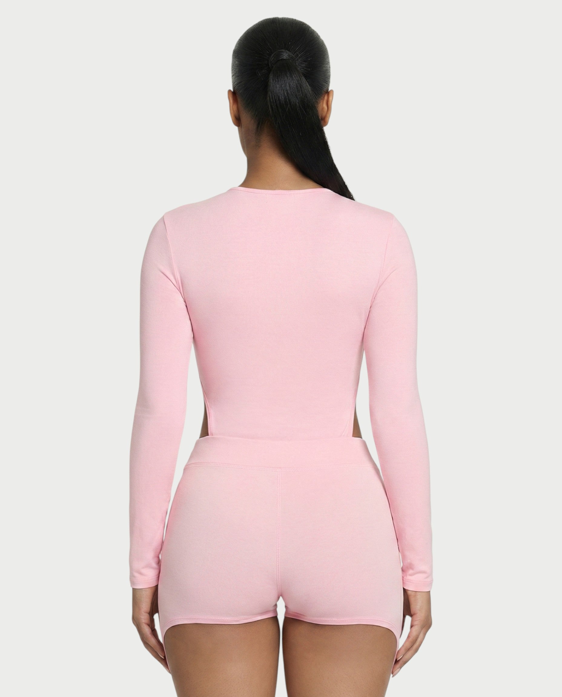 CELLA Cutout Long Sleeve Bodysuit & Shorts Set