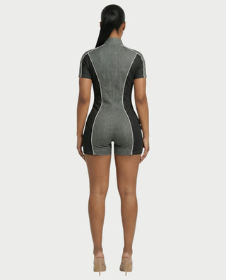 Conjunto de top y pantalones cortos vaqueros con cremallera CLARISSA
