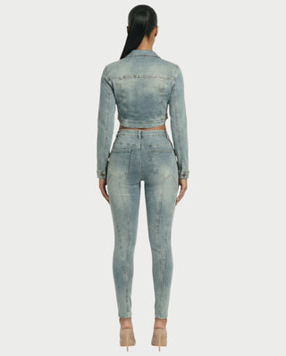 Conjunto de chaqueta vaquera corta y pantalones cortos de cintura alta LILITH