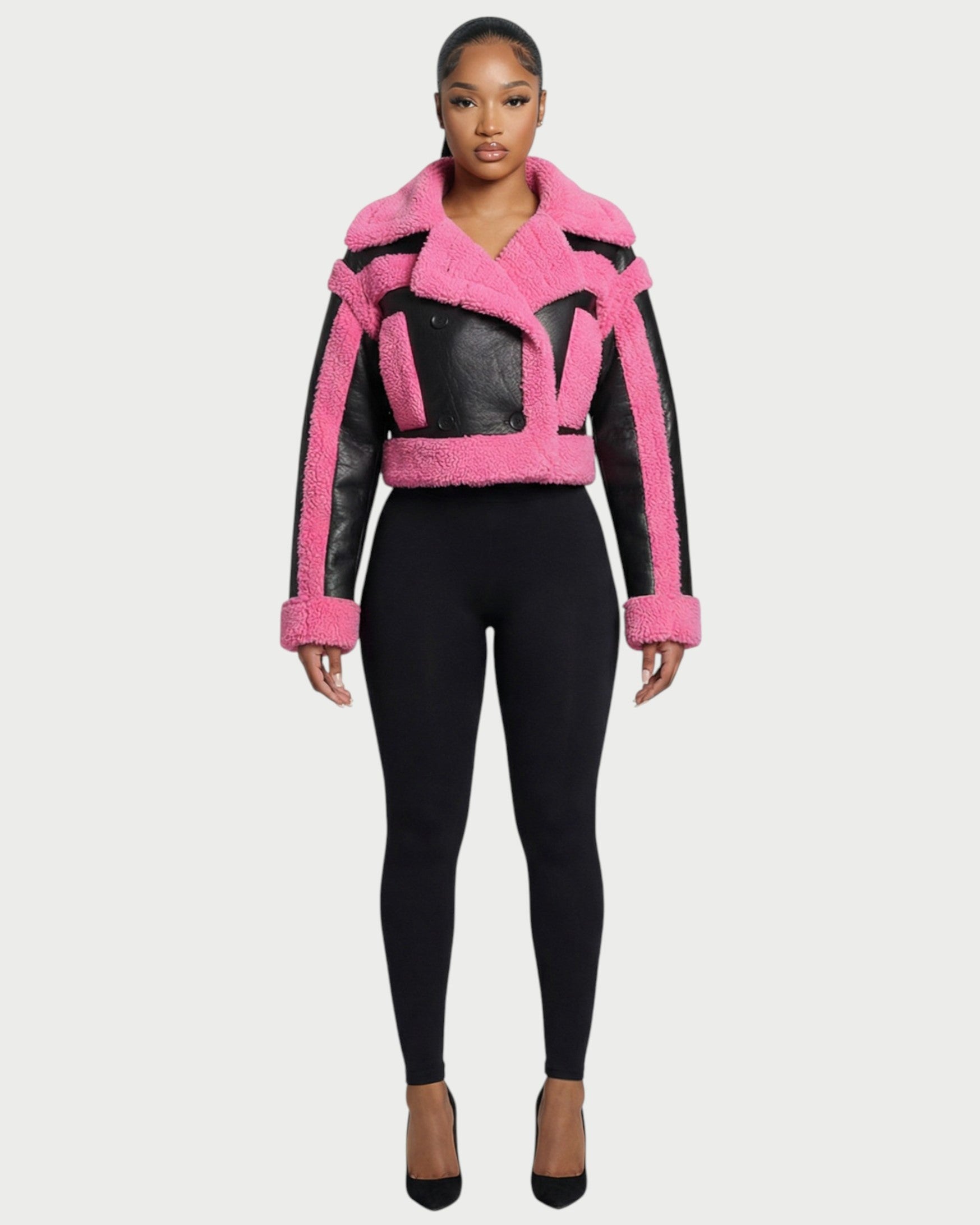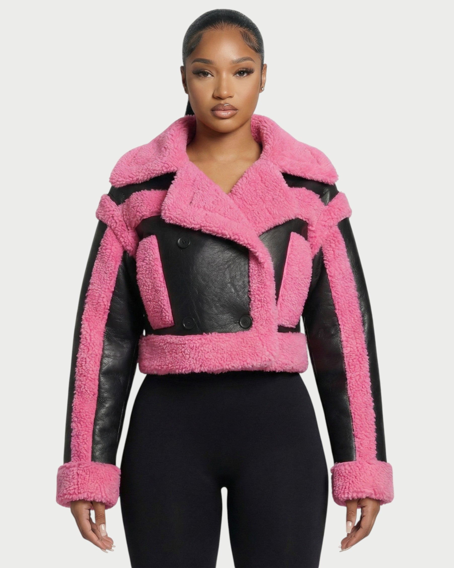 Estructurada. Lujosa. Imponente. La chaqueta Bexley aporta un toque de distinción con su piel sintética con textura de cocodrilo y mangas de pelo sintético afelpado, además de un corte corto, cinturón con ojales y hebilla.