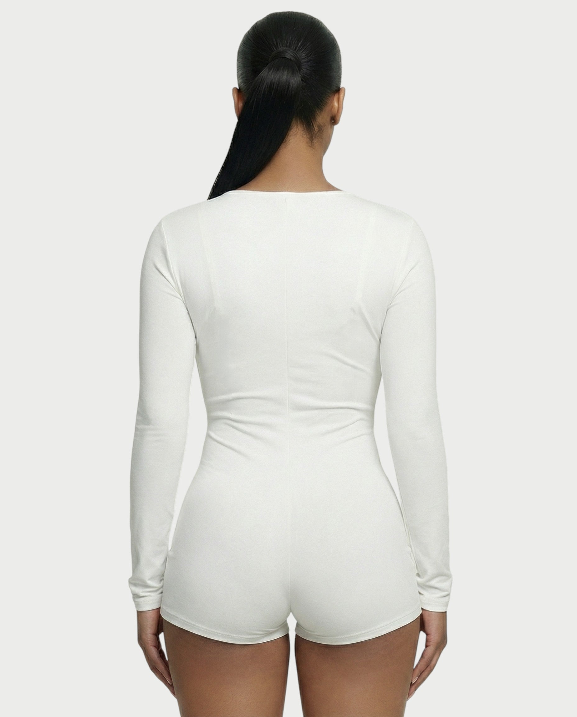 Elegante, atrevido y sin complejos. El mono Arielle presenta un escote pronunciado, realzado por un detalle de anilla dorada central que le da un toque de lujo. Confeccionado en tejido elástico con doble forro, esta prenda se adapta a tus curvas para un ajuste perfecto.