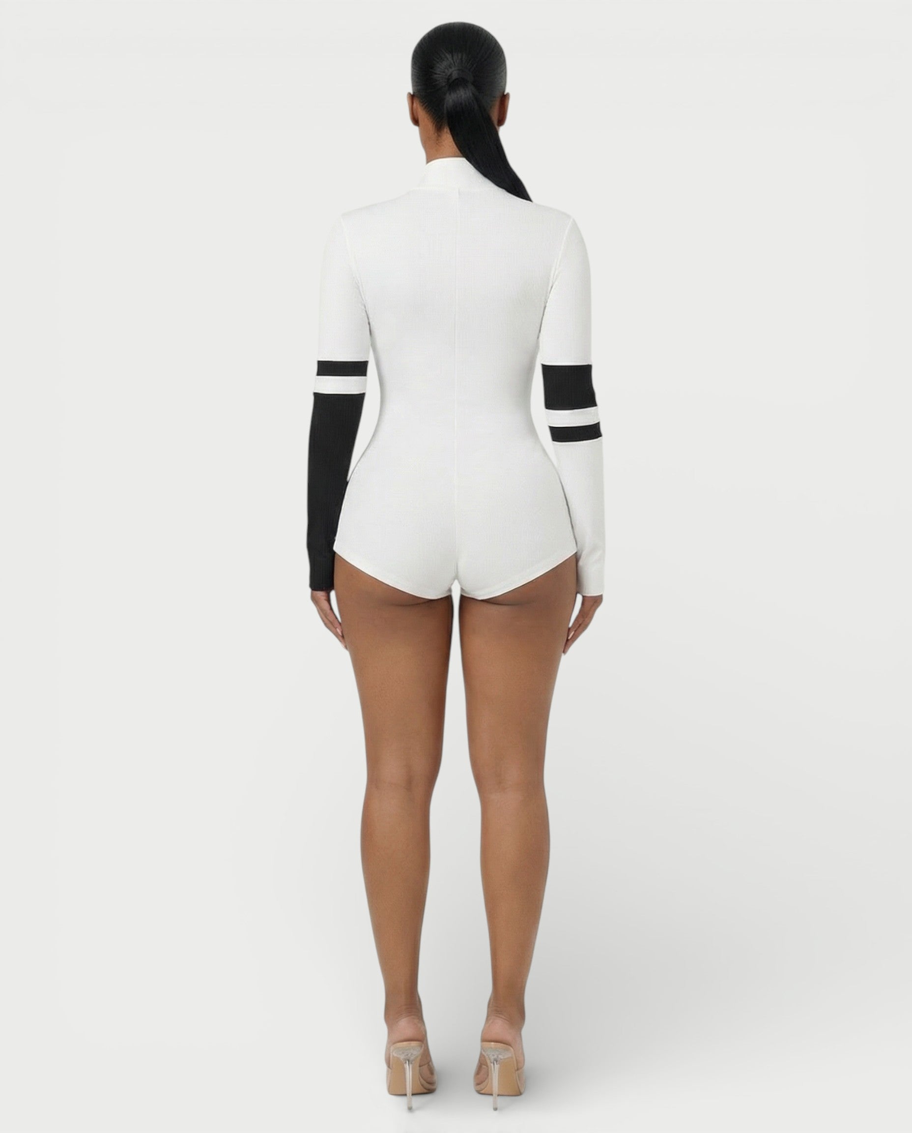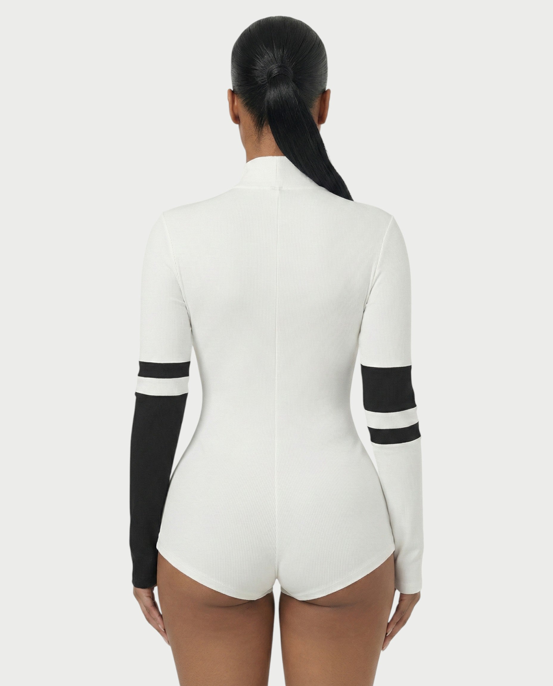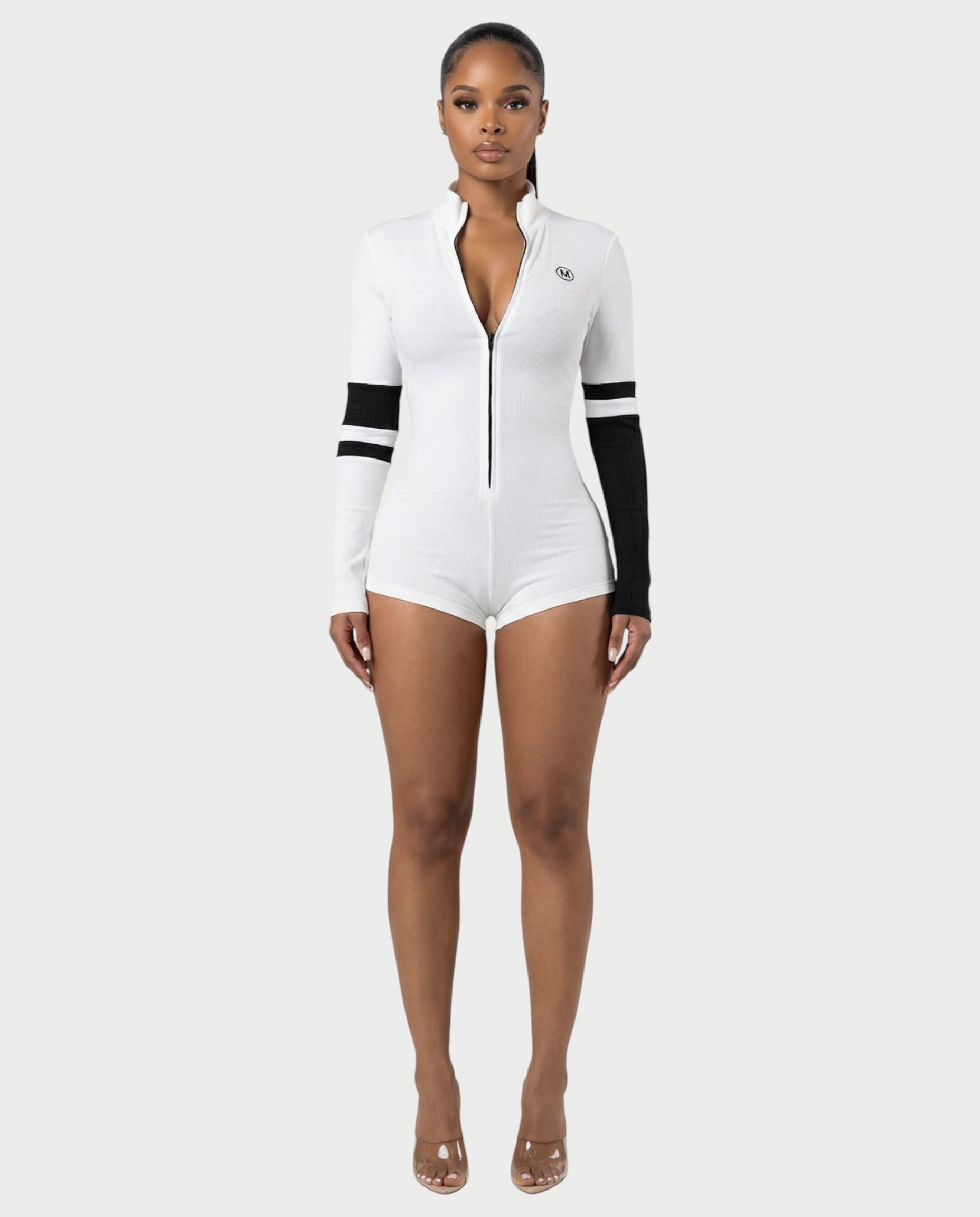 Deportivo pero sin sutileza. El mono Nicole combina la comodidad del tejido acogedor con un corte elegante y ceñido. Diseñado con cuello alto, cremallera frontal y detalles en contraste en las mangas, ofrece una energía deportiva de lujo con un toque de chica rebelde. Ya sea con cremallera baja o ajustada, está hecho para adaptarse a tu figura.