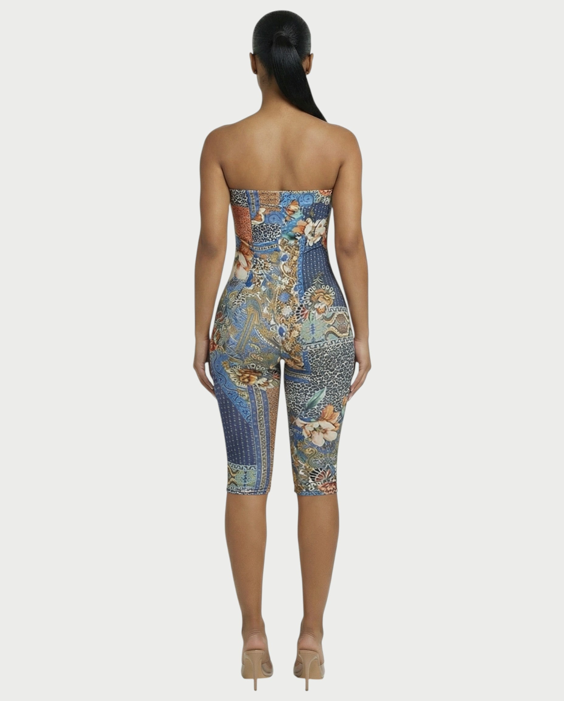 Conjunto de top corto y pantalones cortos con estampado en contraste de media luna ZAVIA