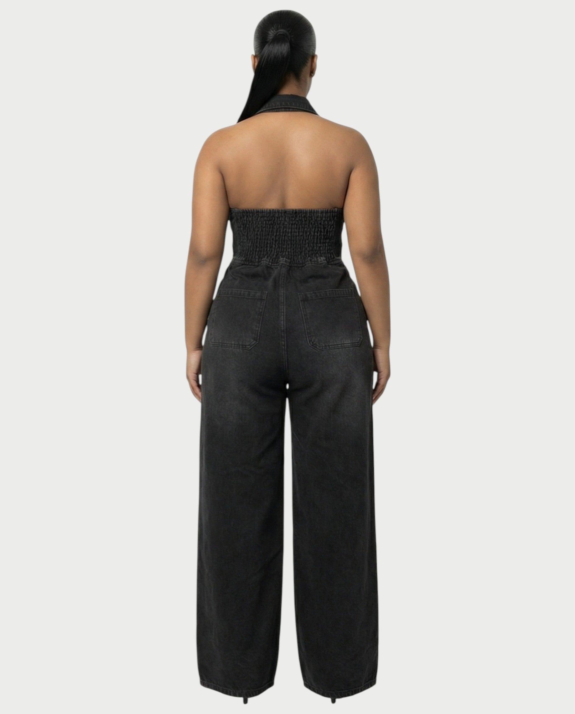 Mono de satén con plumas sintéticas y cuello en V profundo de LANNY