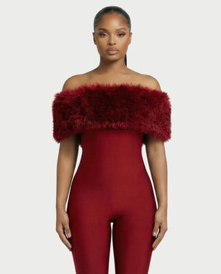 Mono de satén con plumas sintéticas y cuello en V profundo de LANNY