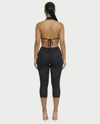 Conjunto de top con volantes de encaje y pantalones capri ANYA