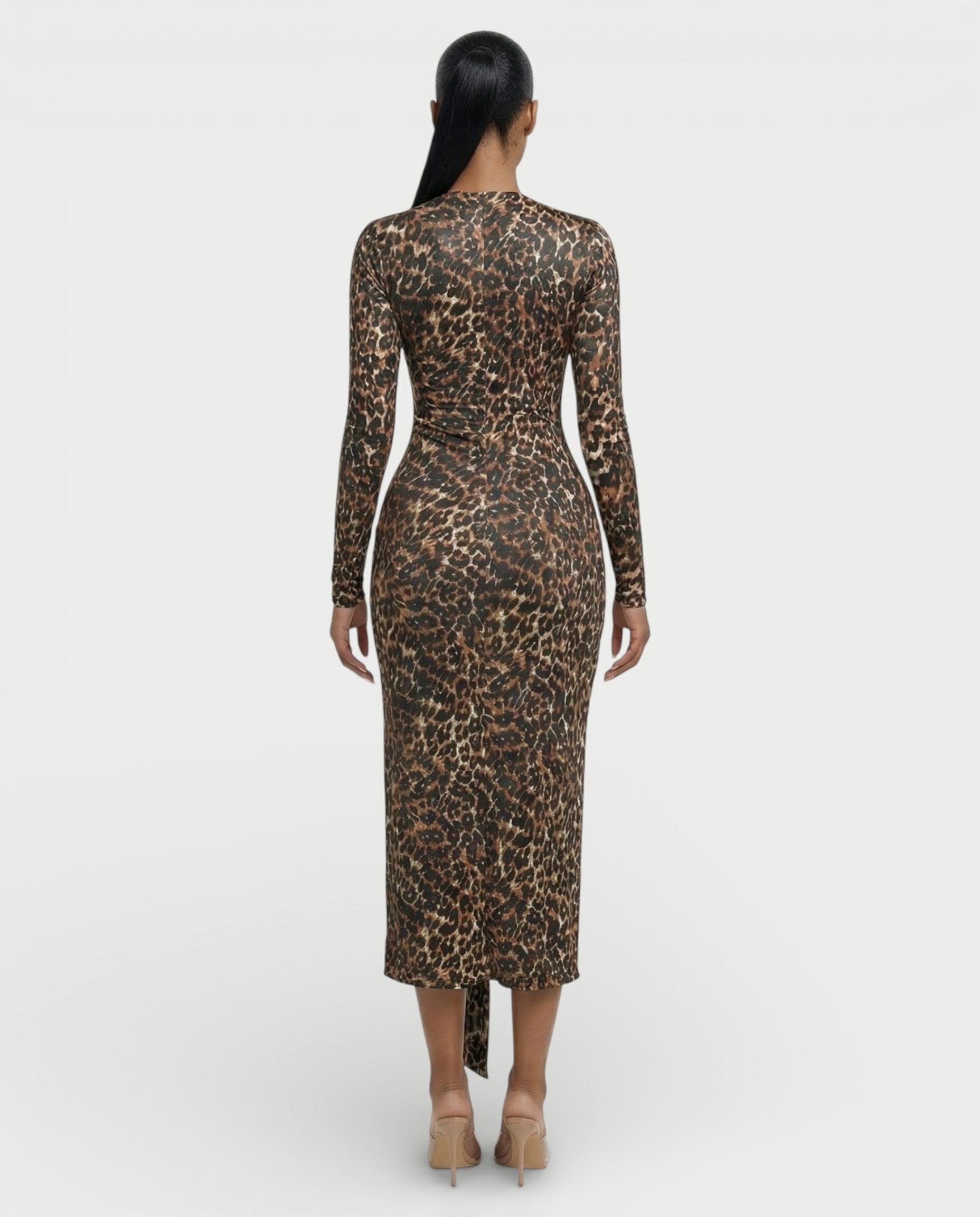 Vestido midi plisado de manga larga con estampado de leopardo de ALONA