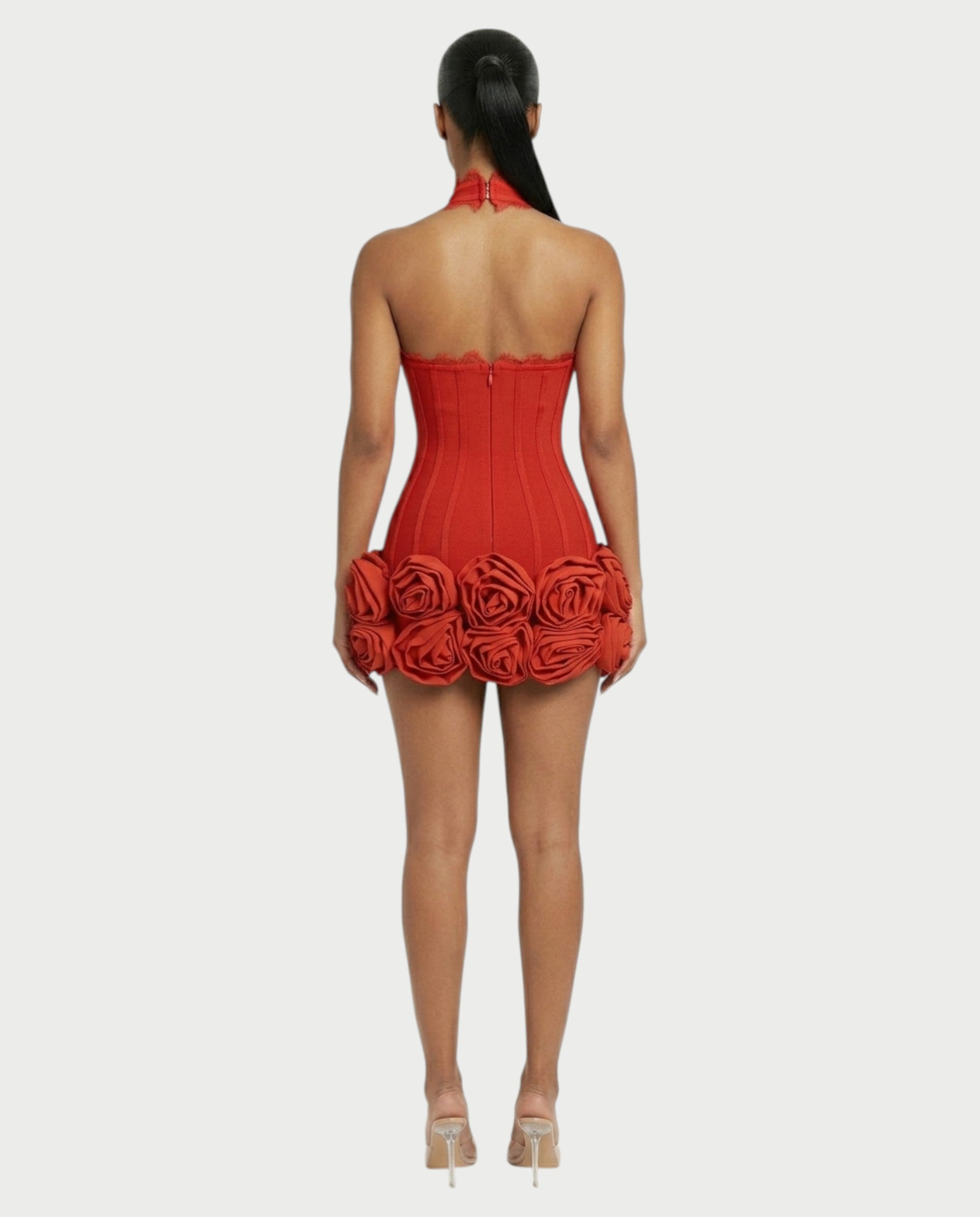 Domina la habitación con el elegante, sensual y lleno de textura vestido Lirra. Con un escote pronunciado, enmarcado por un espectacular ribete de flecos y puños a juego, esta silueta midi esculpe cada curva en su suave tejido elástico.
