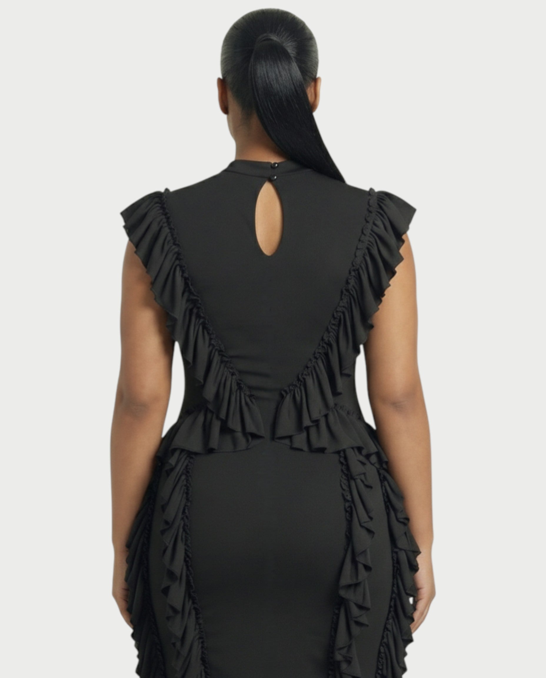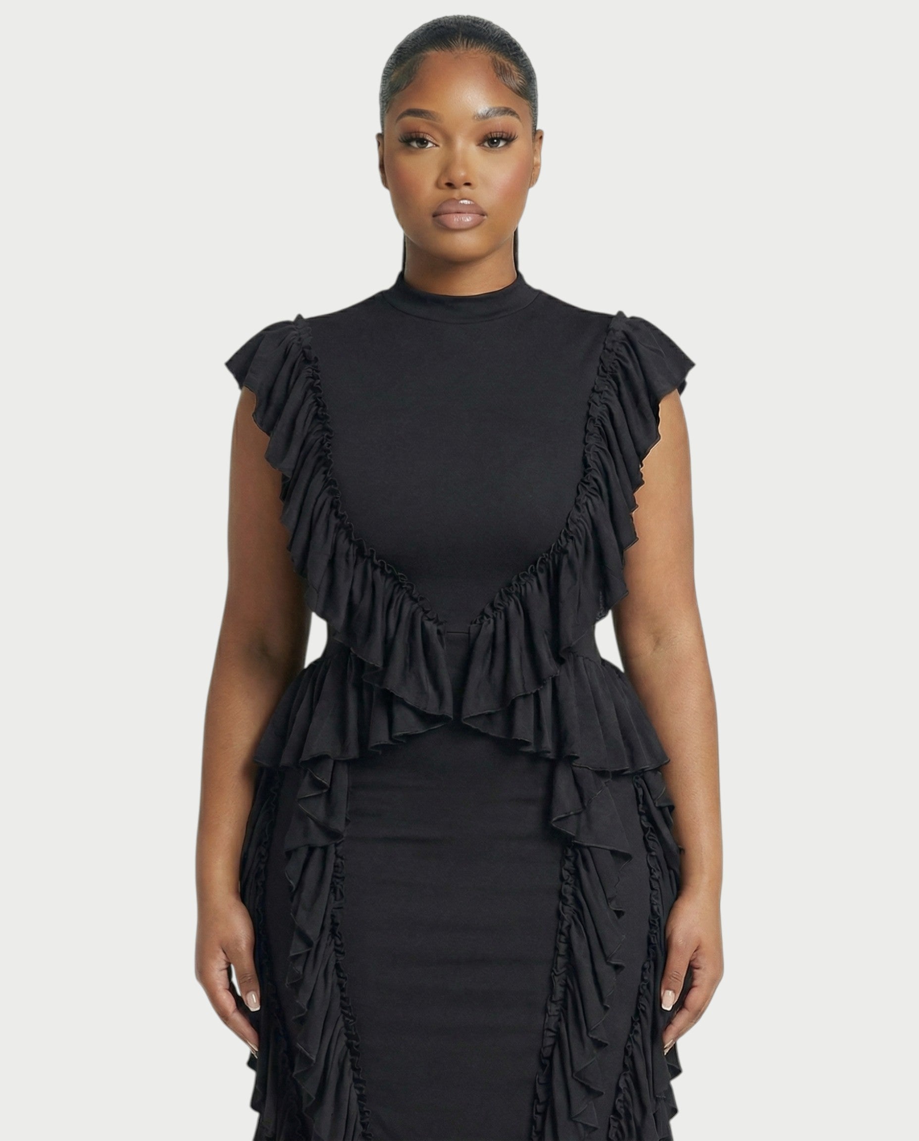 Acapara todas las miradas con el vestido Juvia, diseñado para realzar cada curva con precisión. Este sensual minivestido presenta un escote pronunciado con aberturas esculpidas, realzado por un elegante detalle de cadena que le da un toque especial. La malla fruncida se ajusta al cuerpo a la perfección, creando un ajuste suave y estilizado que apenas se nota.