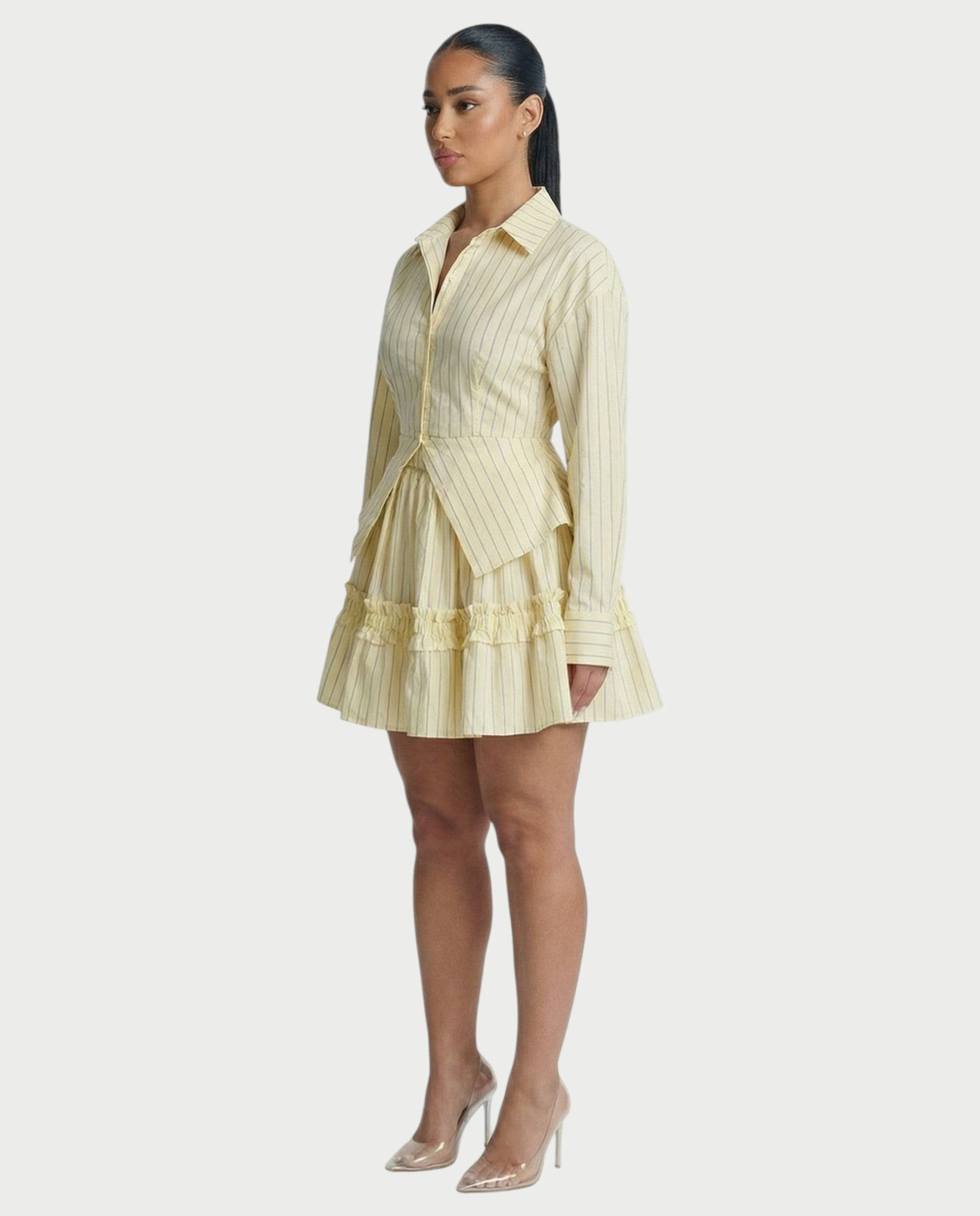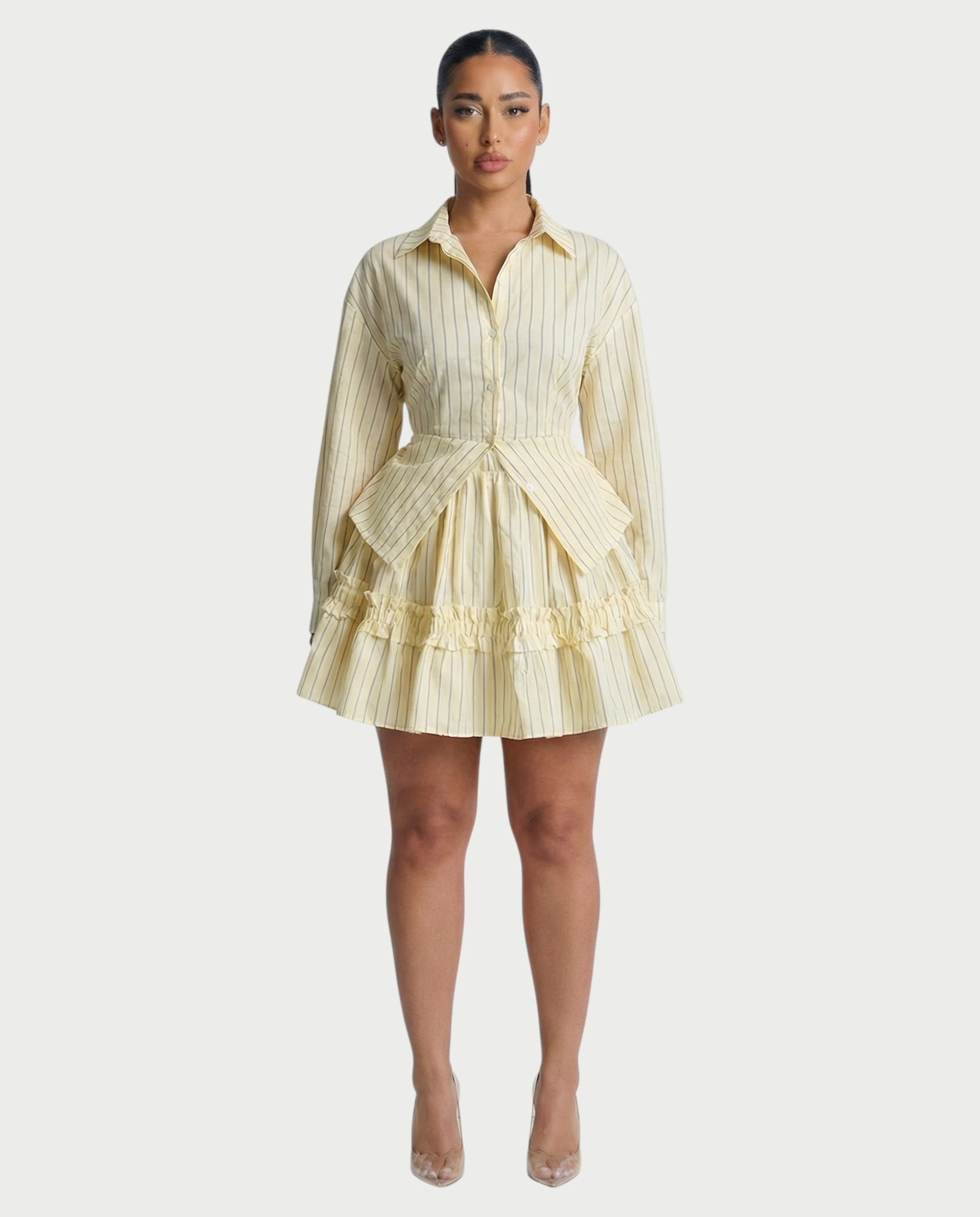 Acapara todas las miradas con el vestido Juvia, diseñado para realzar cada curva con precisión. Este sensual minivestido presenta un escote pronunciado con aberturas esculpidas, realzado por un elegante detalle de cadena que le da un toque especial. La malla fruncida se ajusta al cuerpo a la perfección, creando un ajuste suave y estilizado que apenas se nota.