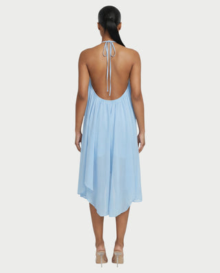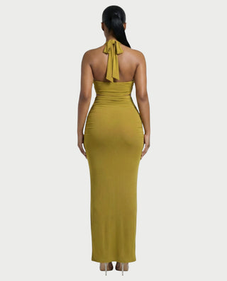 Vestido mini drapeado con escote halter y aberturas ZOLYN