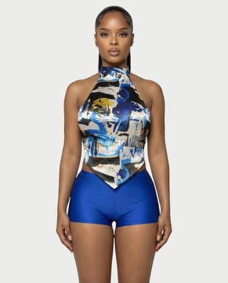 Conjunto de top y pantalones cortos de cuello alto sin espalda MAEVYN