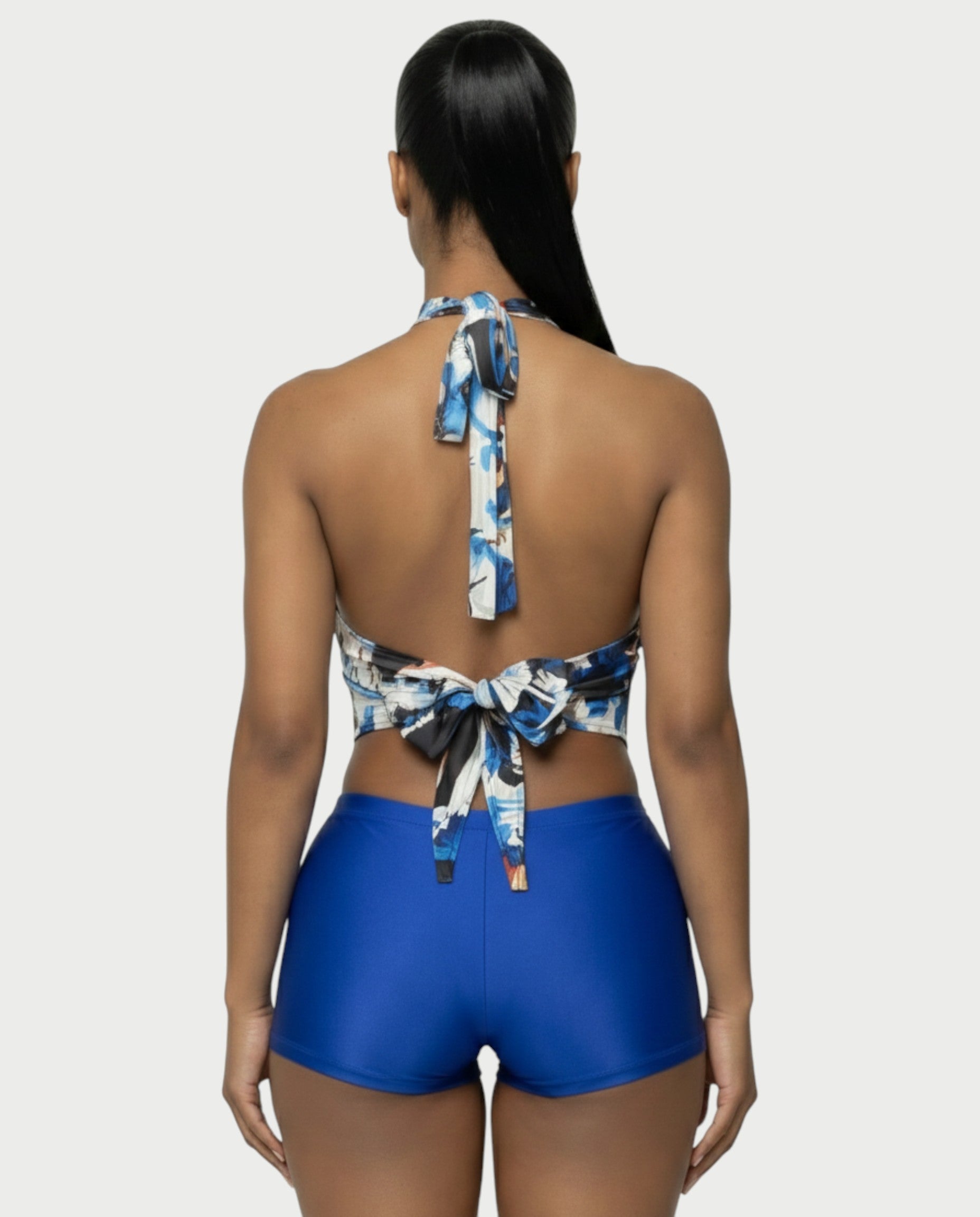 Conjunto de top y pantalones cortos de cuello alto sin espalda MAEVYN