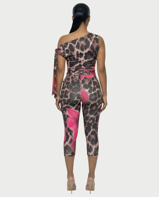 LUJILLE Mono de leopardo floral de un solo hombro
