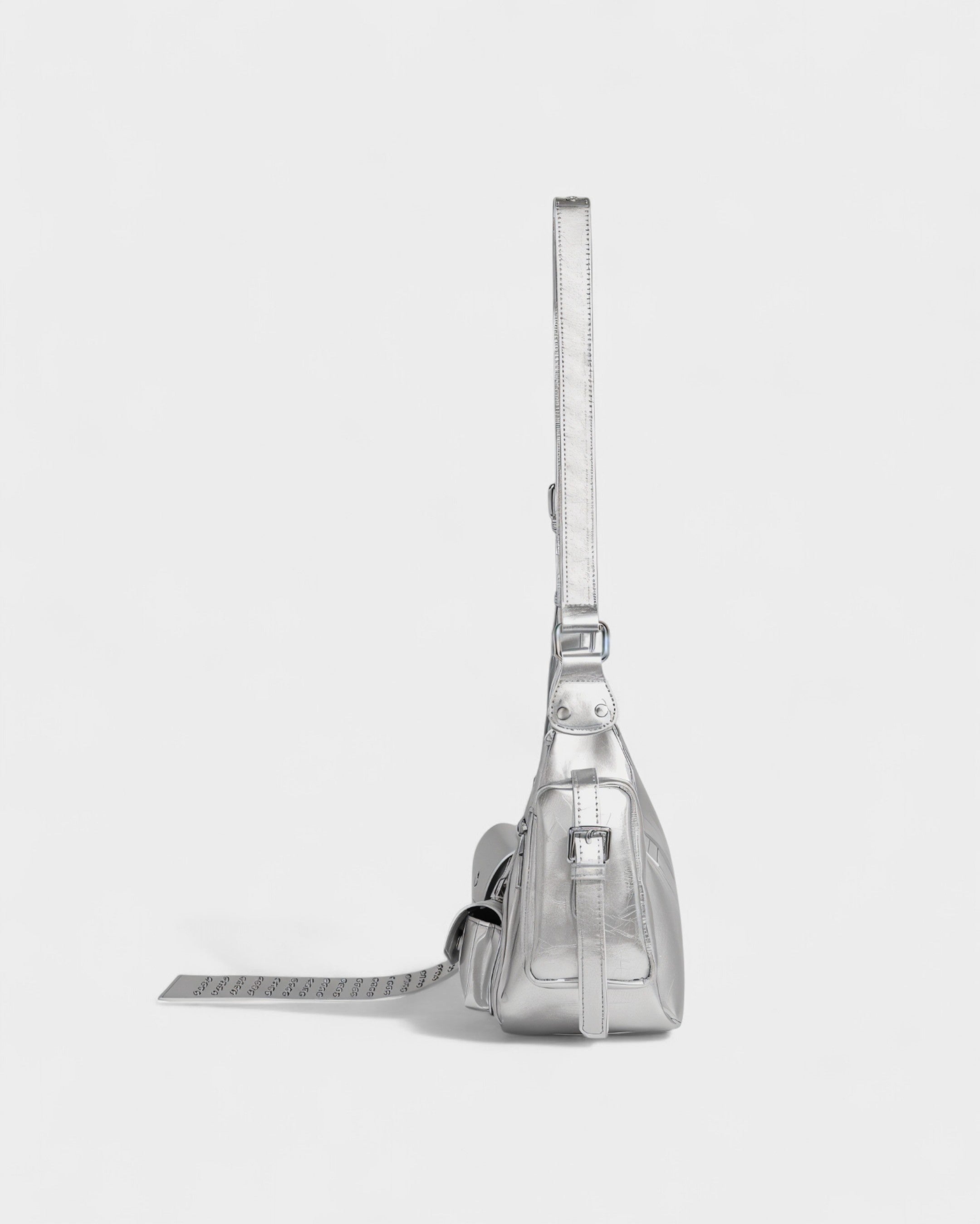 The Farla bag brings a bold, utilitarian edge with its structured silhouette and multiple cargo-style pockets. Designed with an oversized belt strap across the front and a wide adjustable shoulder strap, it blends functionality with a statement look. The mix of zippers, flaps, and metallic hardware gives it a rugged yet fashion-forward feel, perfect for carrying essentials with attitude.