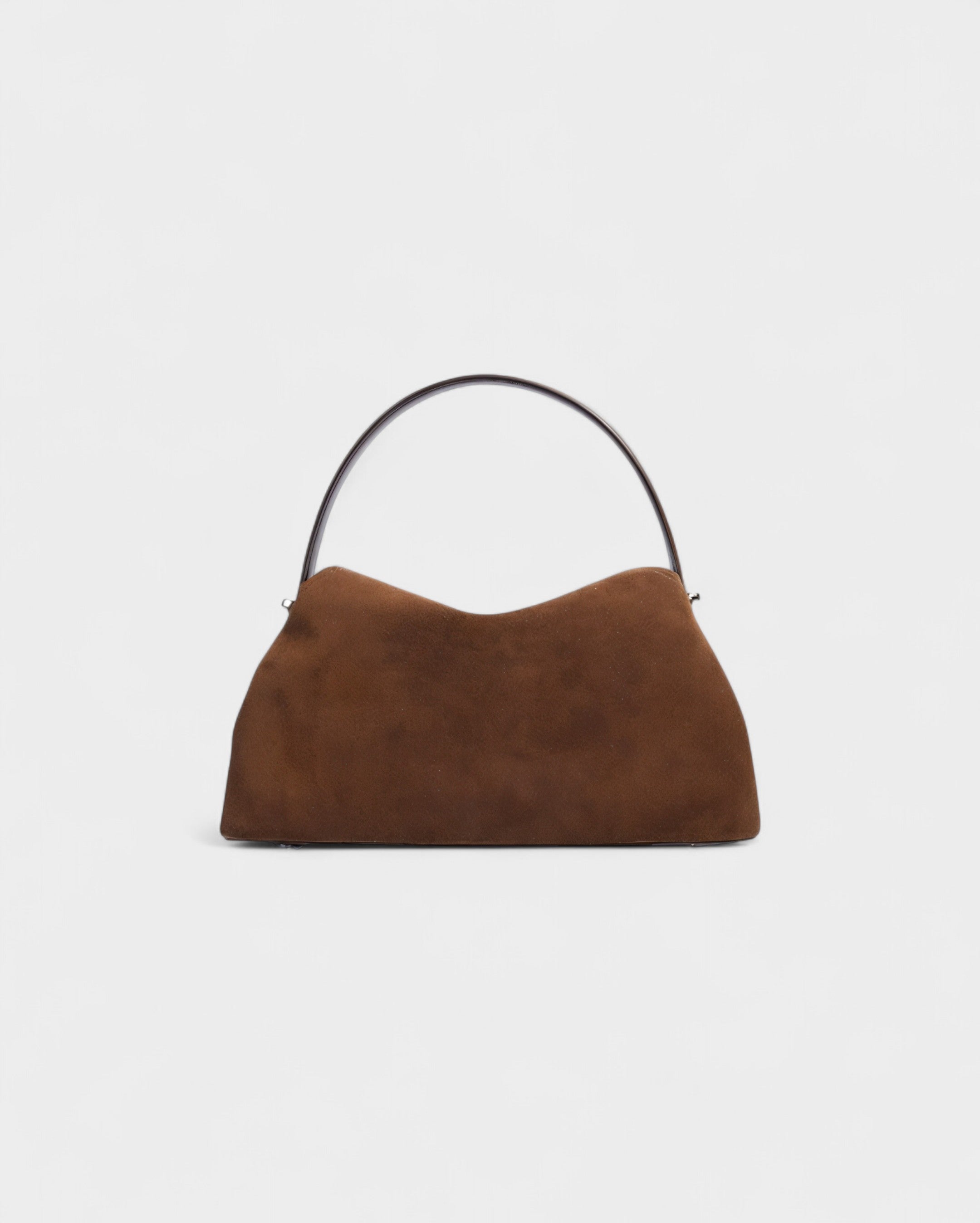 The Olga Bag is sharp, sculptural, and modern. Its angular frame and supple suede body create a striking contrast, while the curved handle adds a fluid edge. Polished hardware completes the look, giving this piece an architectural feel that sets it apart from the classics.