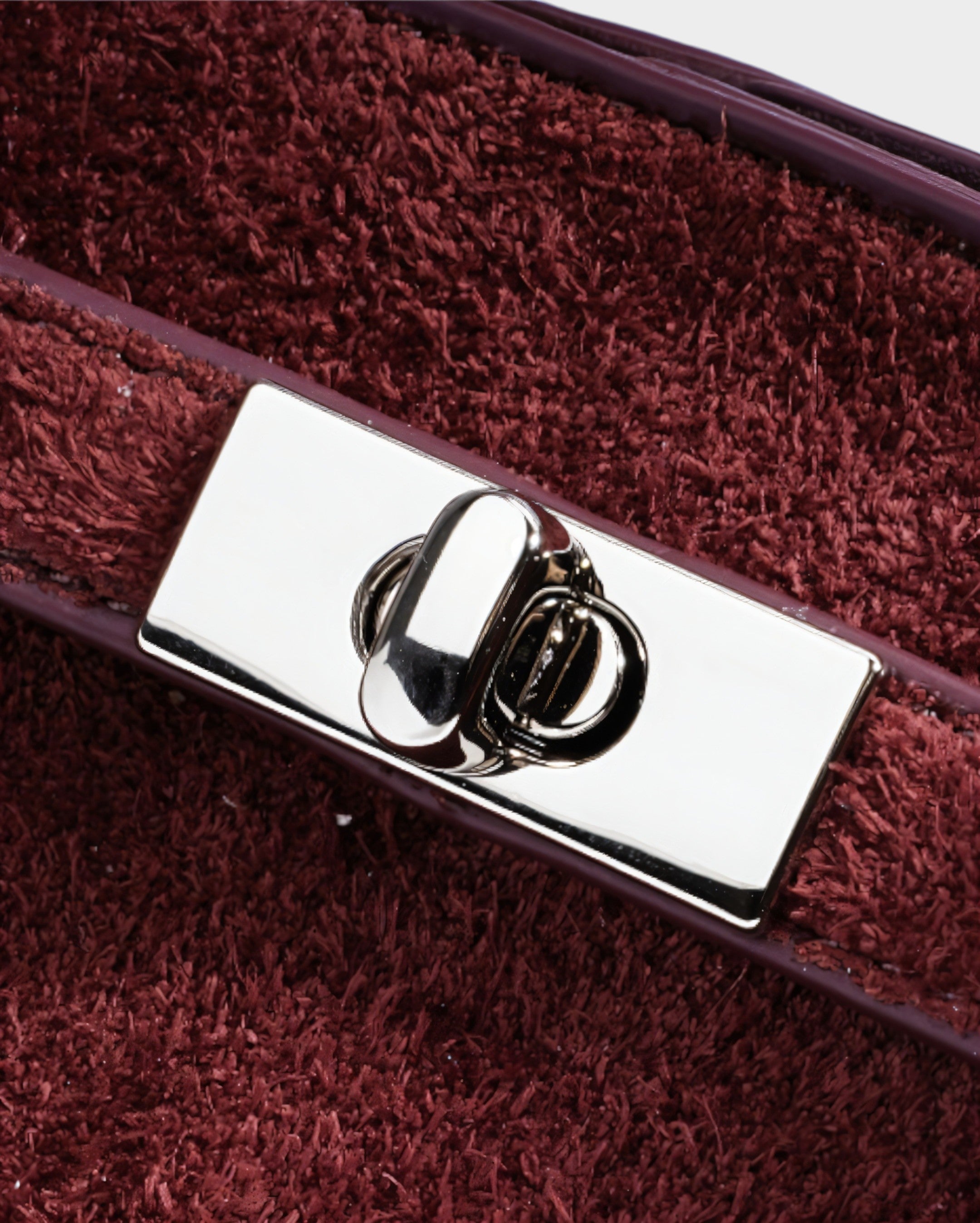 The perfect balance of structure and ease, this suede tote is a versatile essential. Designed with dual top handles and an adjustable long strap, it transitions seamlessly from shoulder carry to crossbody. A sleek metal clasp detail adds a touch of polish to its roomy silhouette.