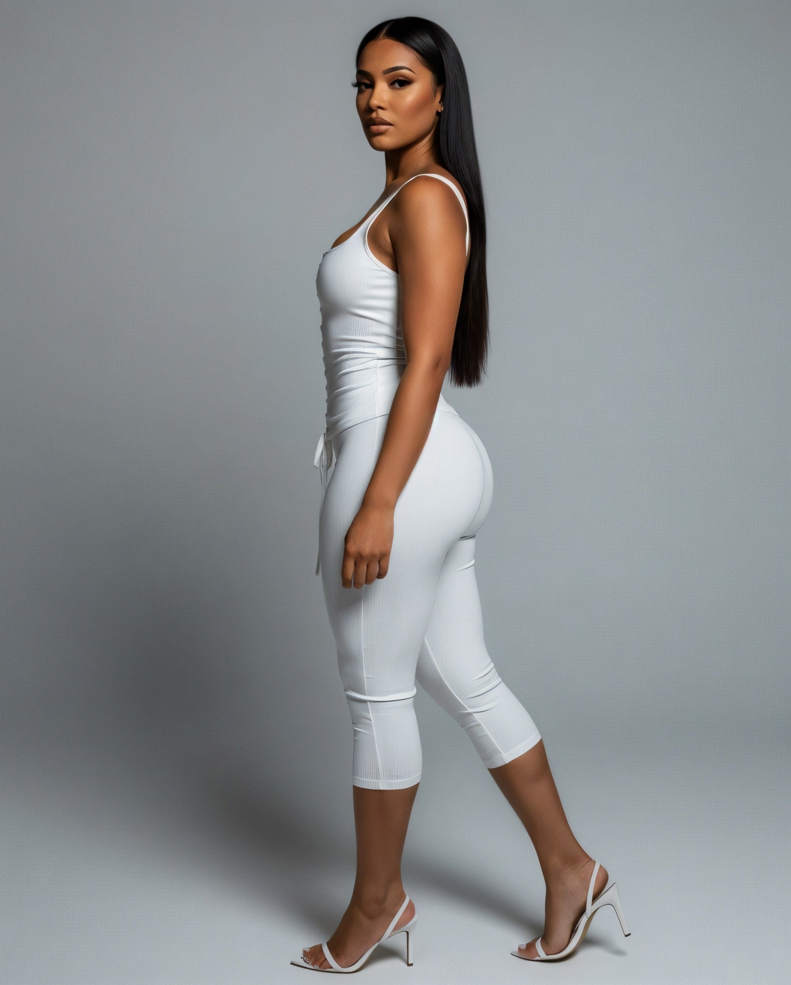 Chic, structured, and designed to flatter, Matilda is the ultimate blend of elegance and edge. The ribbed corset-style top features lace-up detailing for a contoured, sculpted fit, while the high-waisted capri leggings accentuate your curves with a sleek, body-hugging silhouette.