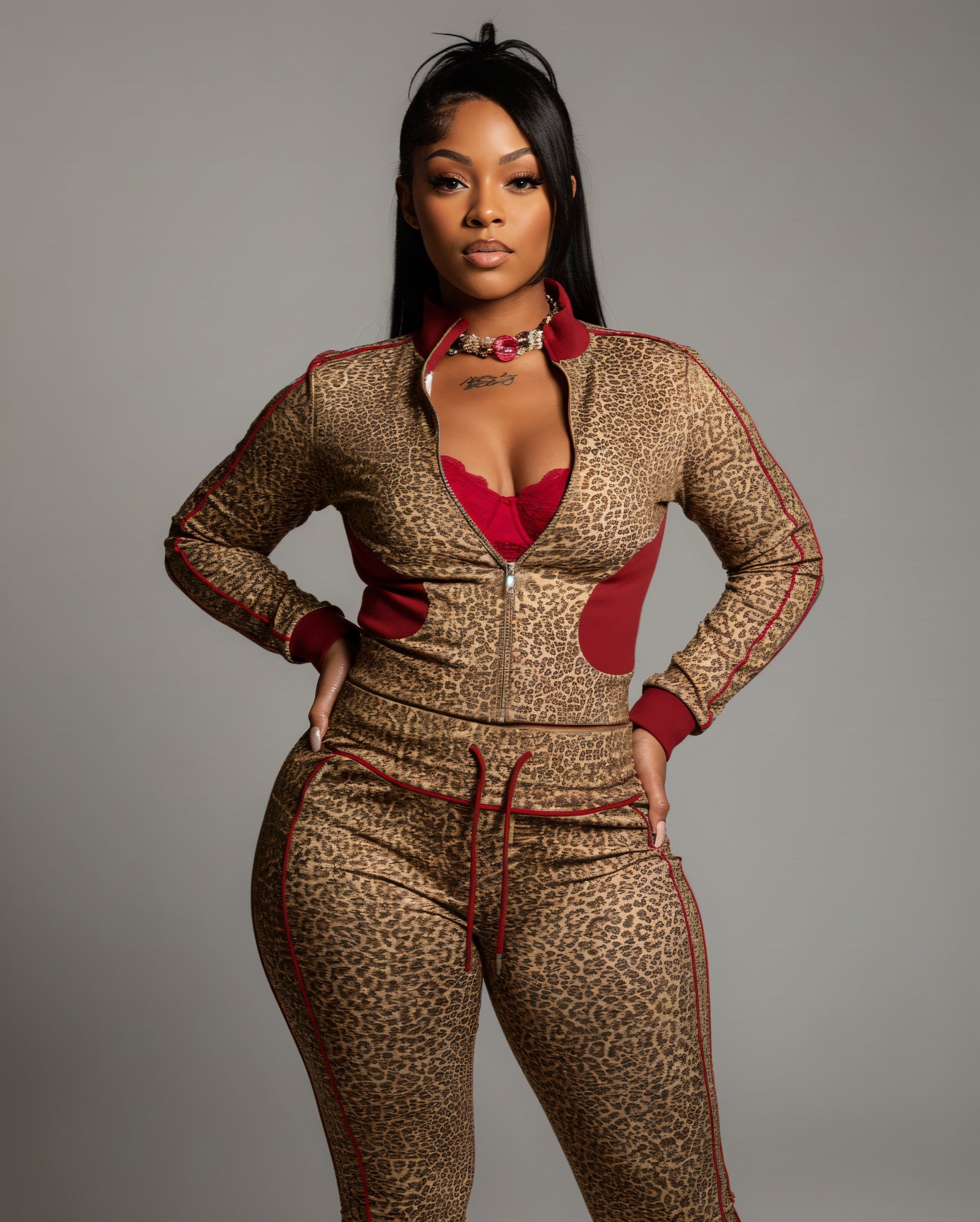 DERMA Leopard Print Zip-up Top & Leggings Set