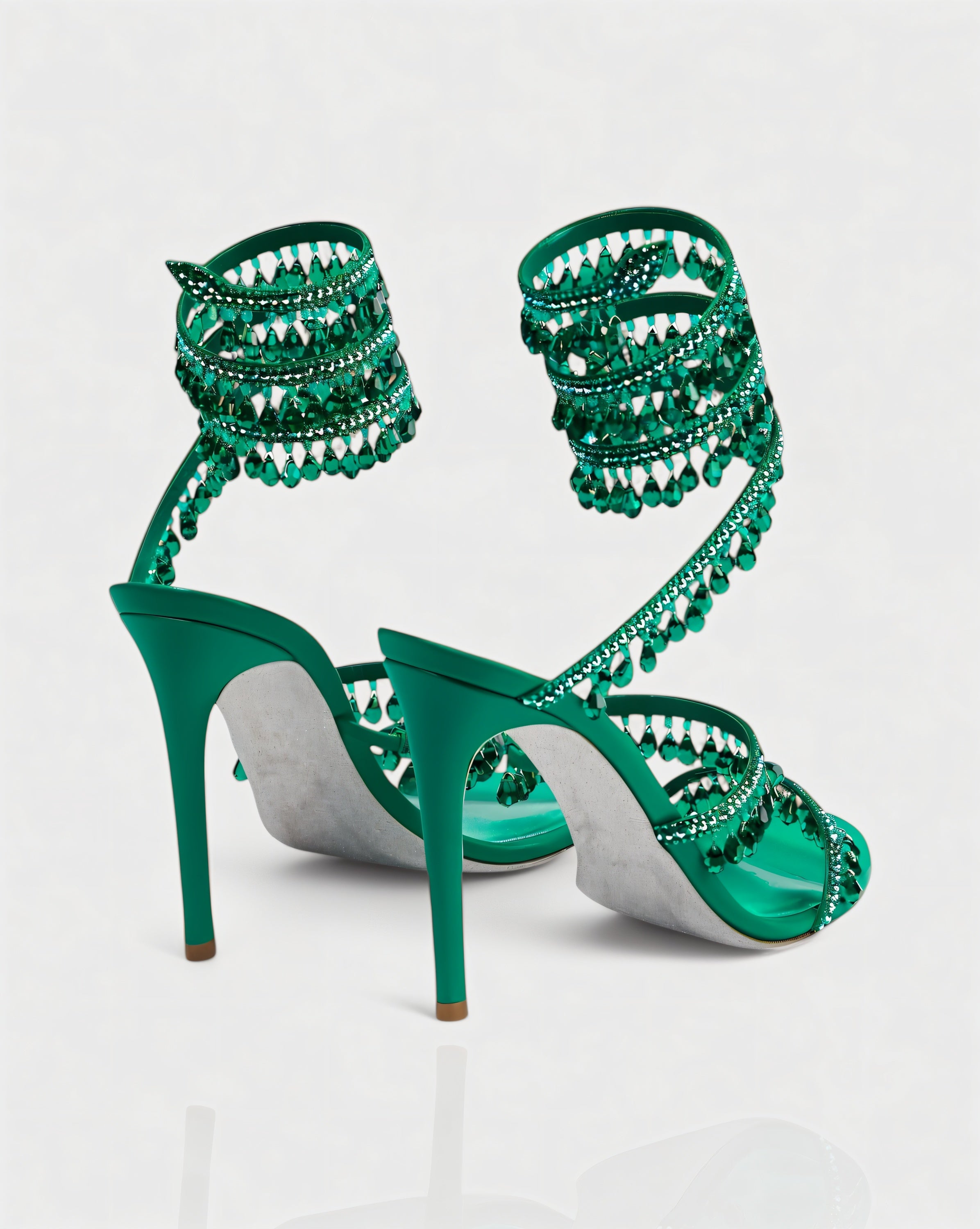 ALYRA Rhinestone Tassel Ankle-Wrap High Heels
