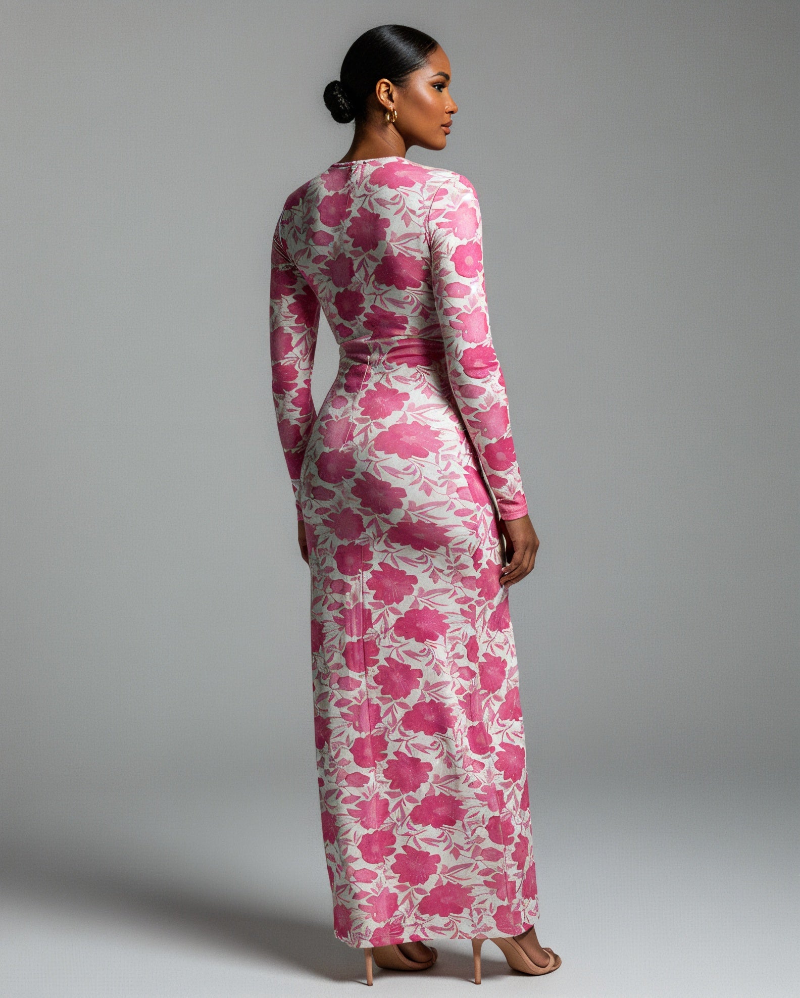 DELPHIA Floral Print Long Sleeve Slit Maxi Dress