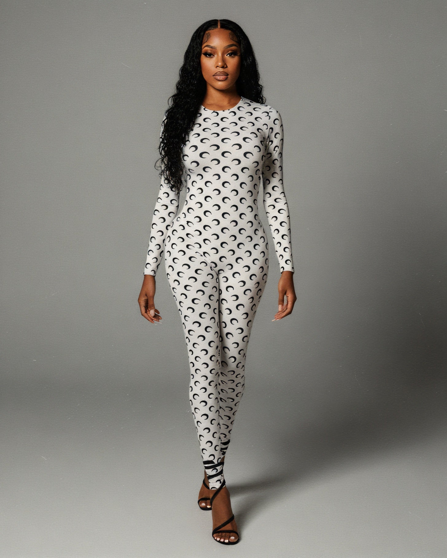 The Kim moon jumpsuit is made for the woman who commands attention with confidence and style. Featuring a long sleeve, curve-hugging fit, and a bold all-over crescent moon print, this statement piece blends edgy elegance with undeniable attitude.