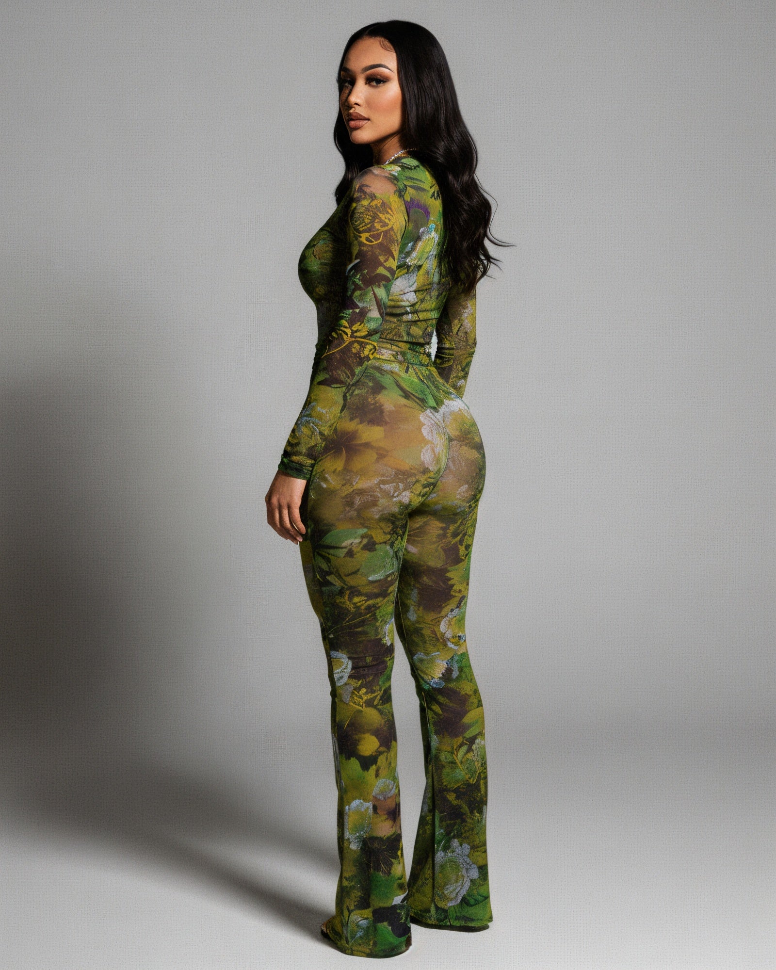 SANNA Floral Mesh Long Sleeve Top & Pants Set