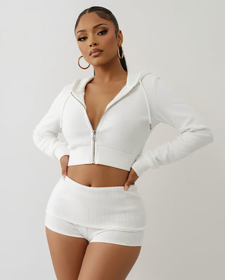 LAVENDER Zip-Up Hoodie Top & Drawstring Shorts Set