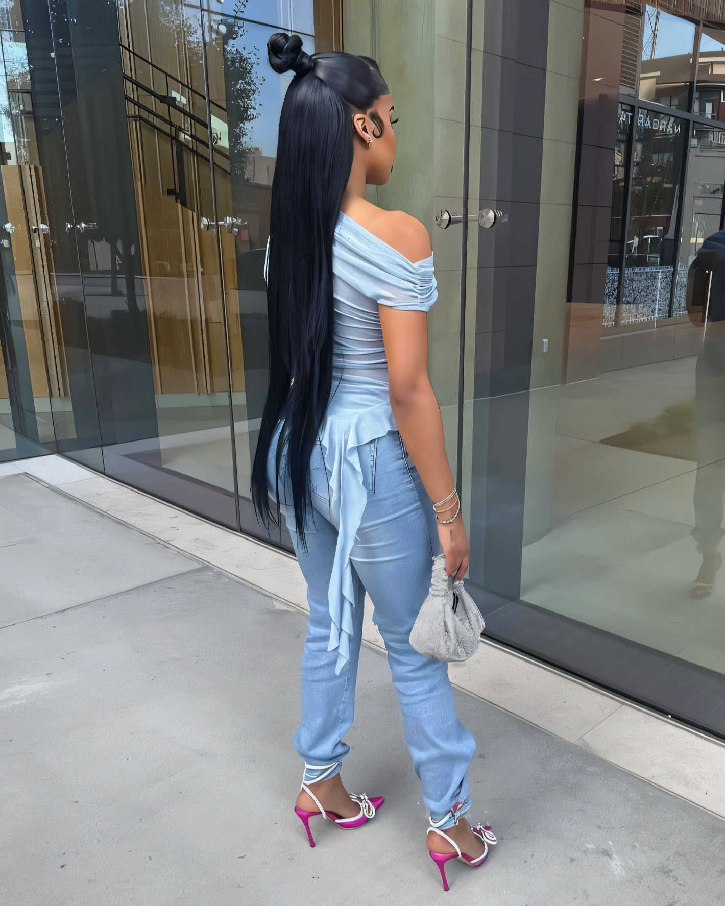 Make a dramatic entrance in the Fiorella Top, a captivating piece designed to mesmerize. This unique top features a chic one-shoulder design with an alluring asymmetrical silhouette, crafted from a delicate mesh fabric adorned with playful ruffles and subtle sparkle. Its sheer quality and dynamic draping create a flirty and confident look that's perfect for a night out.