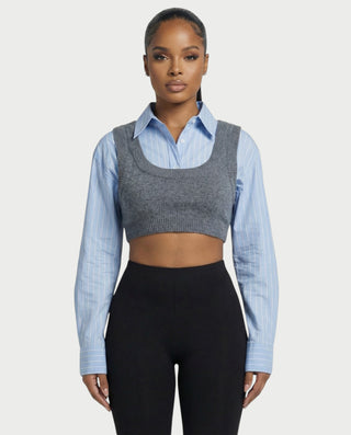 SARIEL Striped Long Sleeve Shirt & Knit Crop Top Set