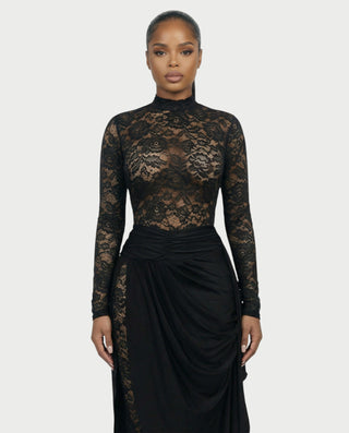 EVASYN Sheer Lace Jumpsuit & Wrap Skirt Set