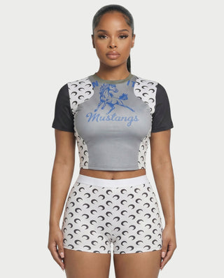 ZAVIA Crescent Contrast Print Crop Top & Shorts Set