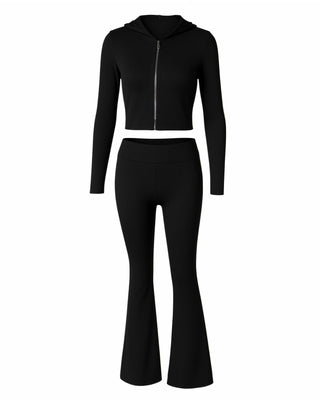 RAINY Zip-Up Hoodie and Flare Pants Set