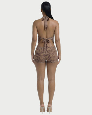 LARIMA Draped Halter Tie-Back Top & Bodycon Shorts Set